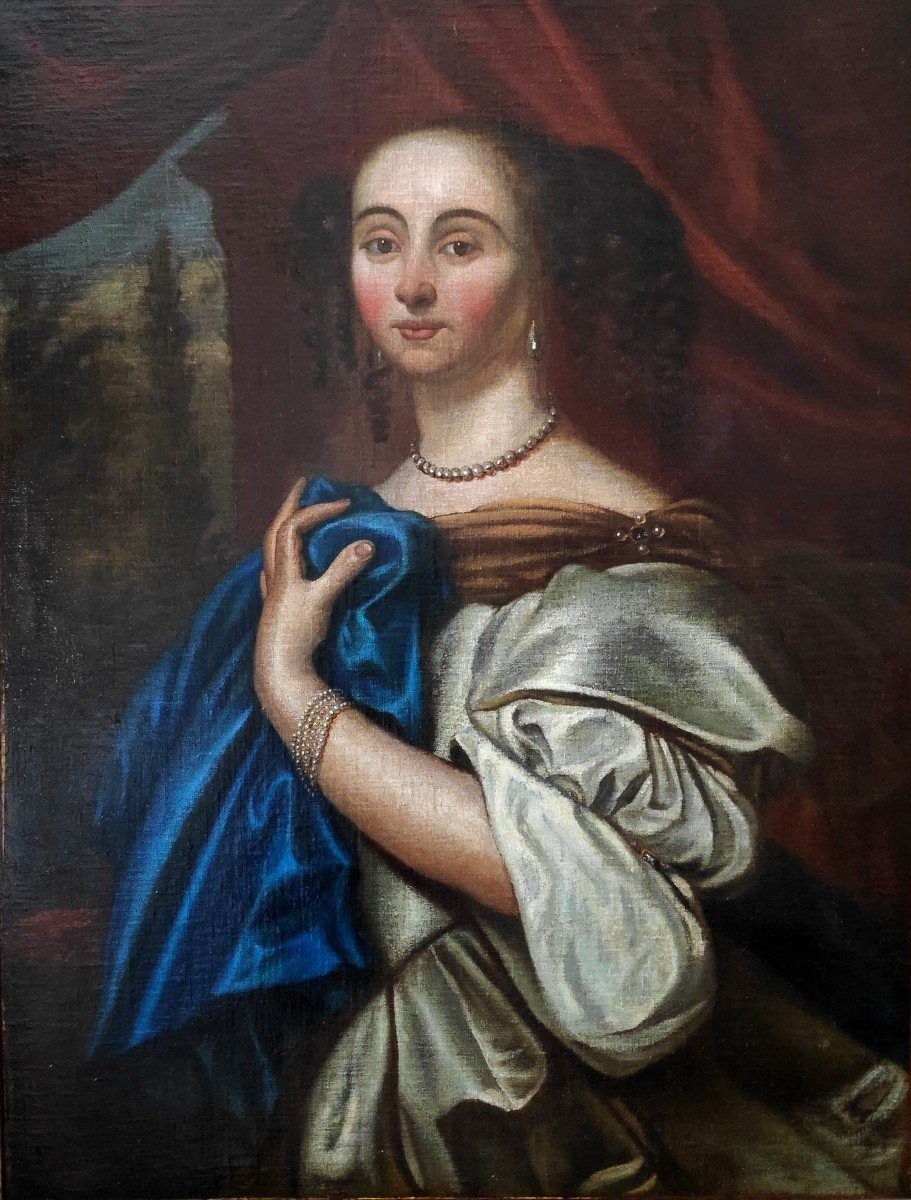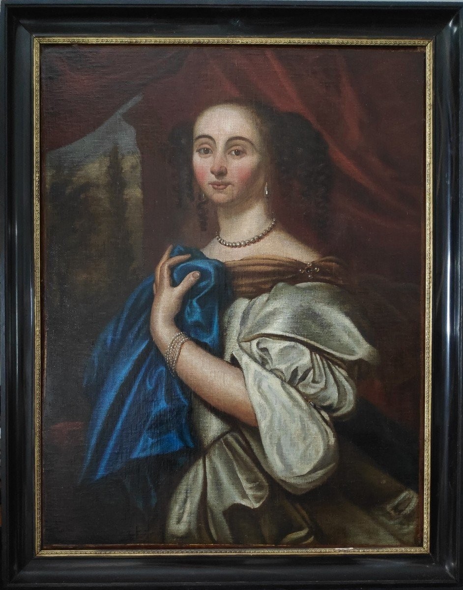 S357 Portret eleganckiej kobiety z perłami, Olej na płótnie, XVIII w.