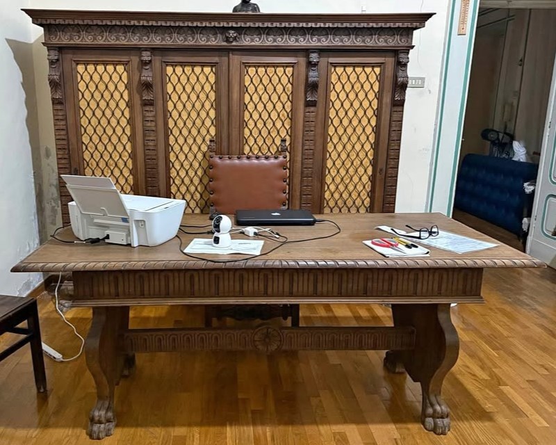 W skład kompletu wchodzi: biblioteka, stół/biurko, fotel.