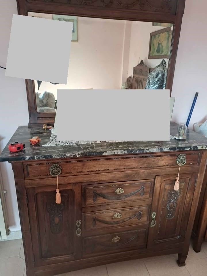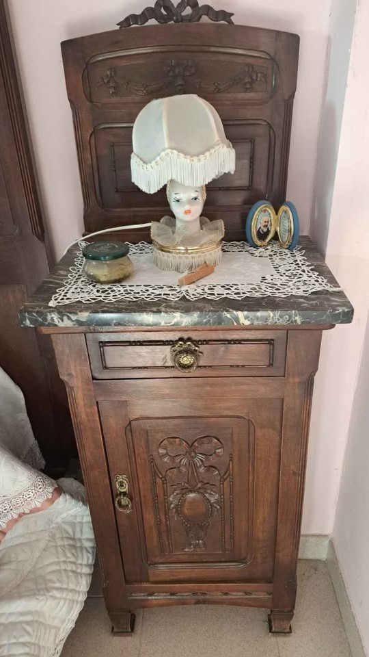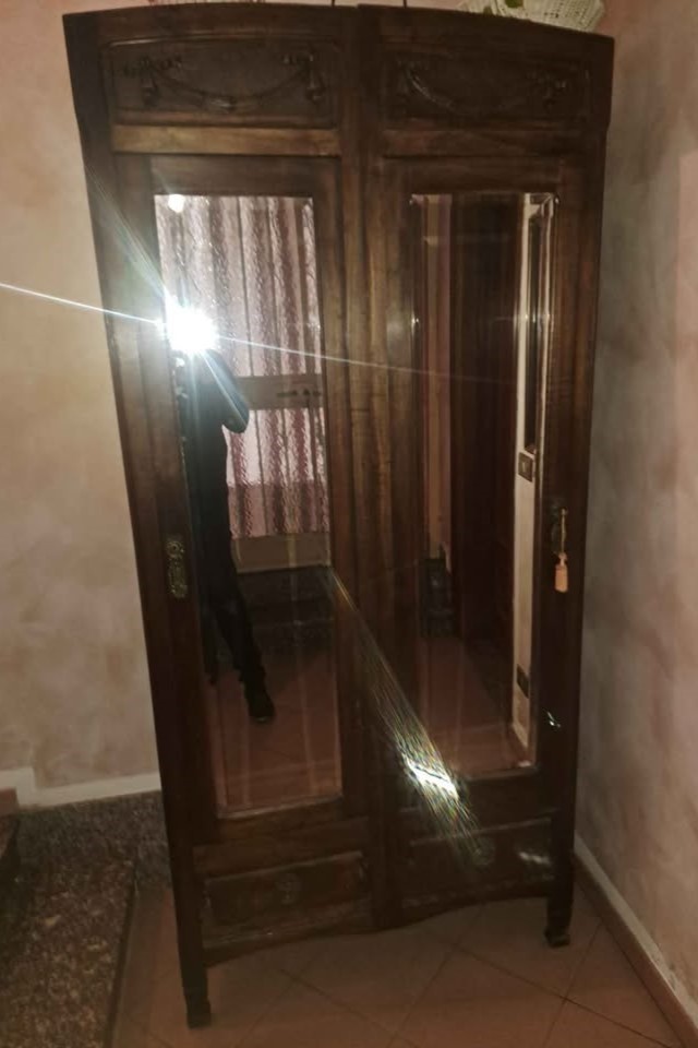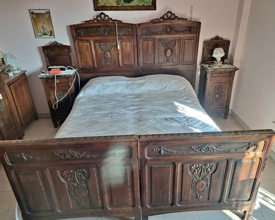 W skład kompletu wchodzi: 2 x łóżko, 2 x szafka nocna, para szaf, komoda.