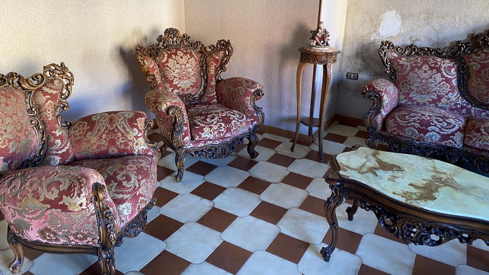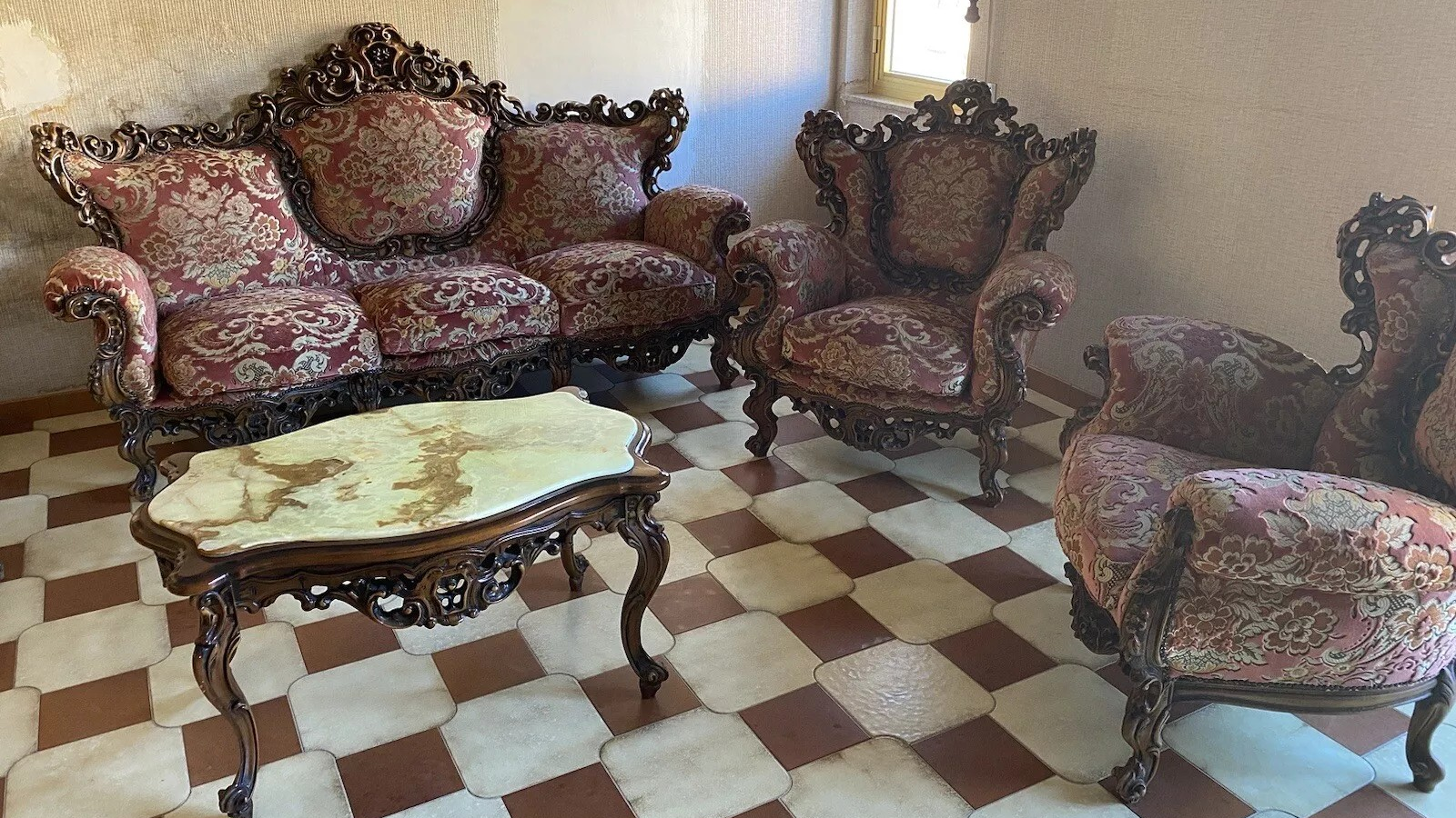 W skład kompletu wchodzi: sofa, 4 x fotel, stolik do kawy.