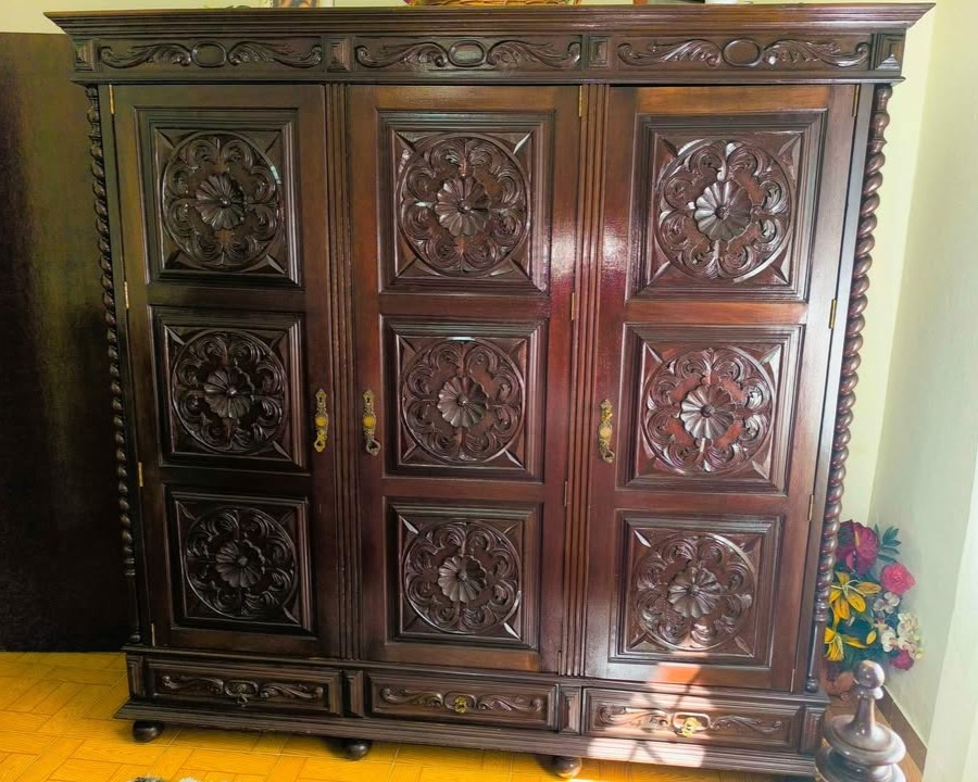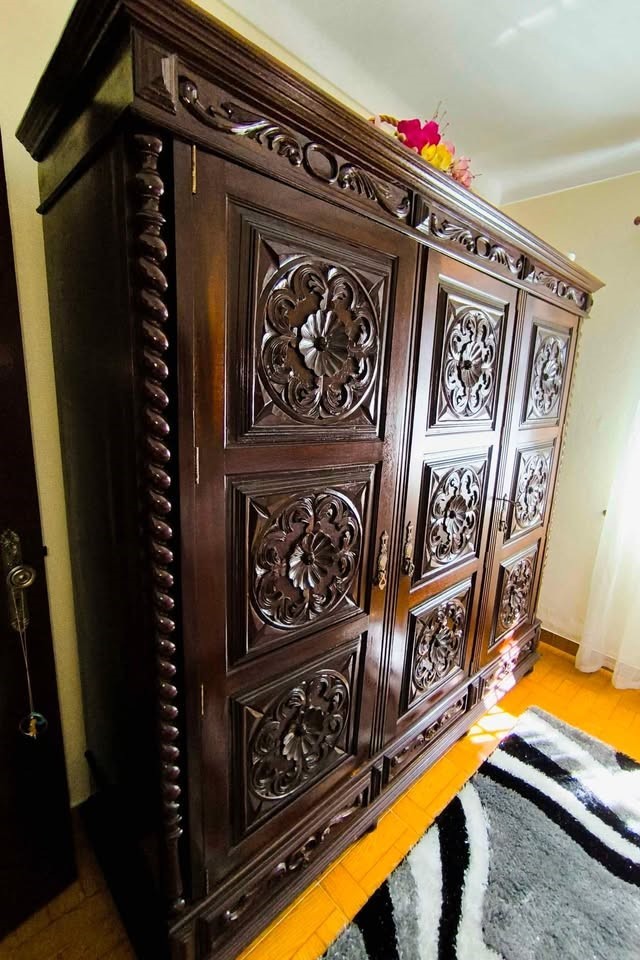 W skład kompletu wchodzi: łoże, 2 x szafka nocna, komoda, szafa.