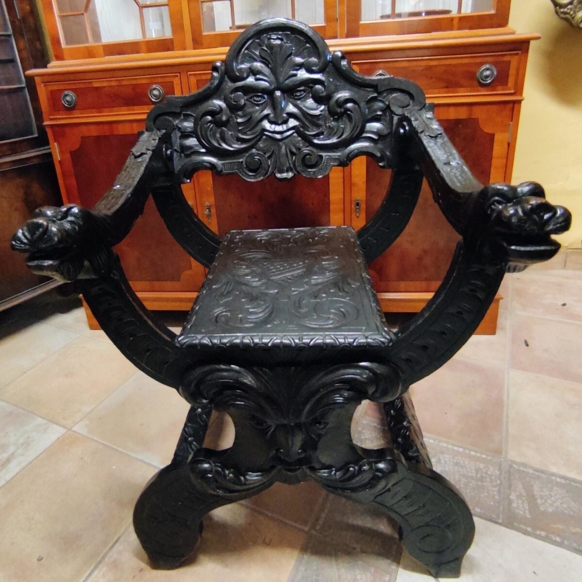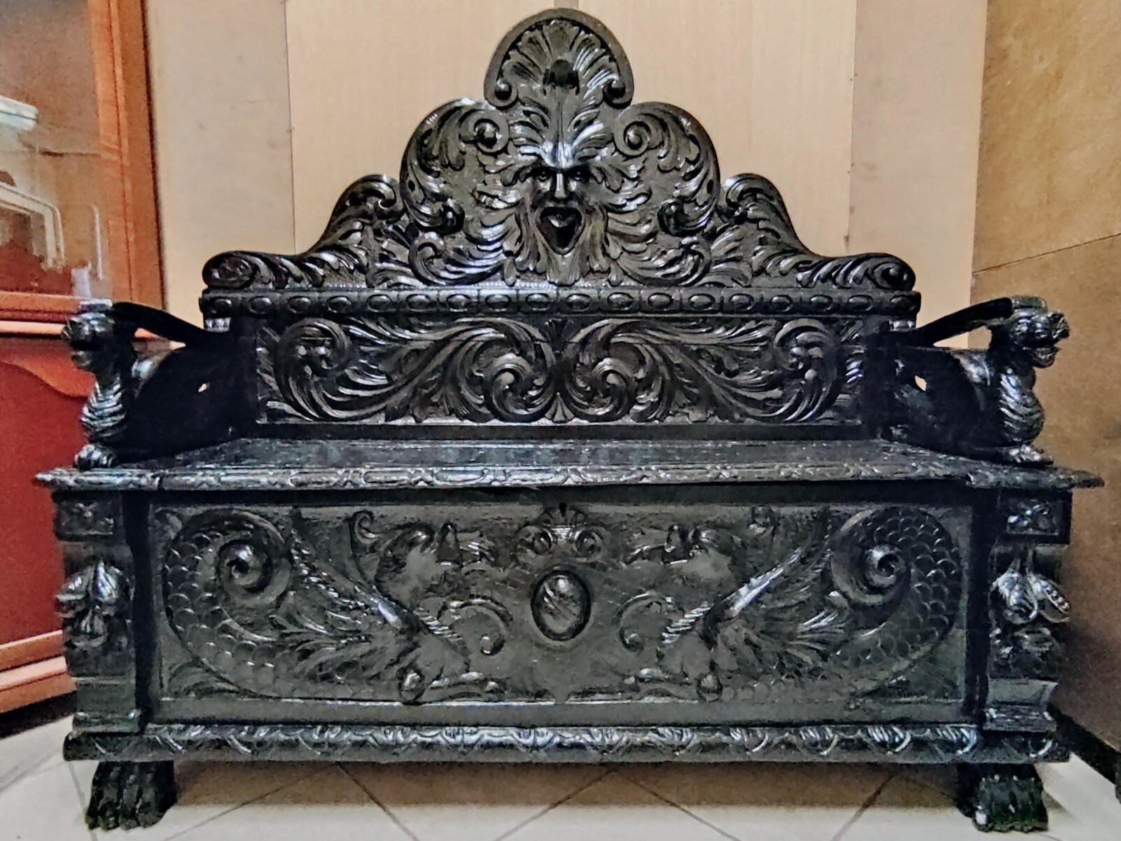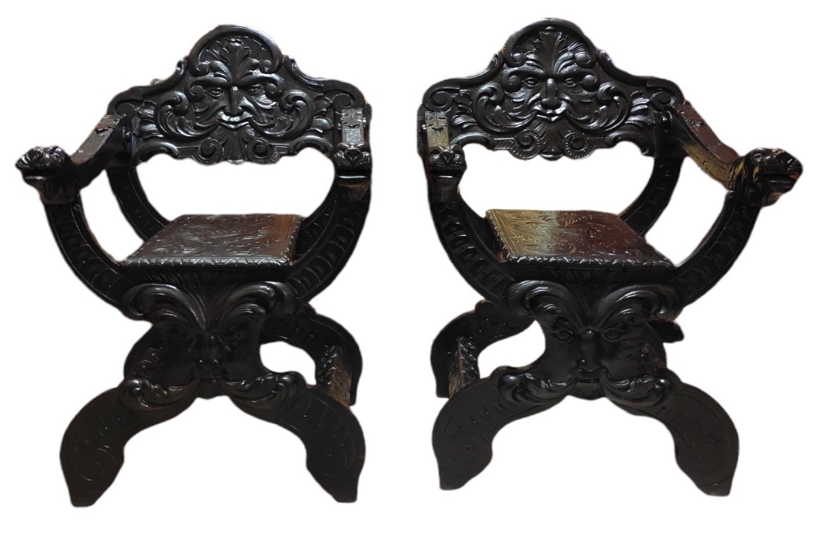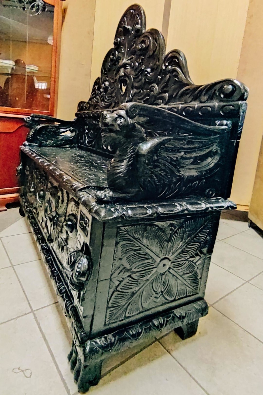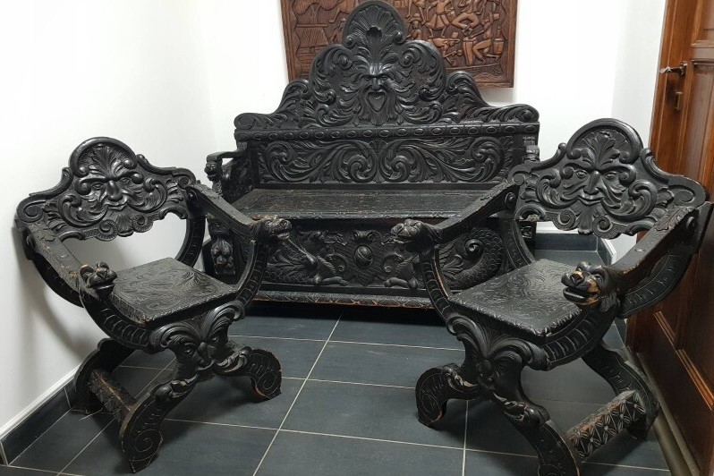 S3702 Neorenesansowa ławka/skrzynia + krzesła