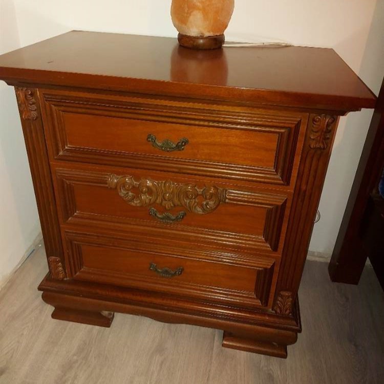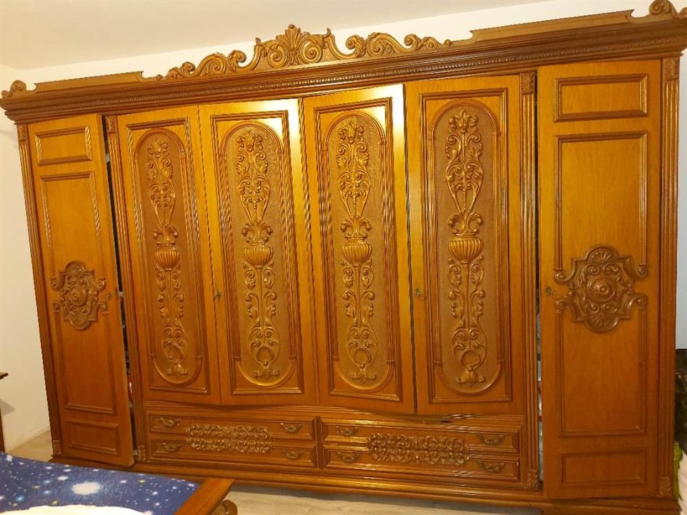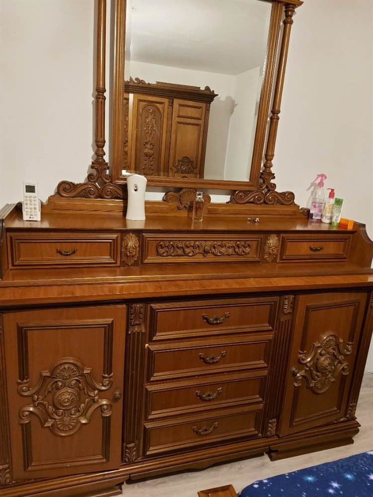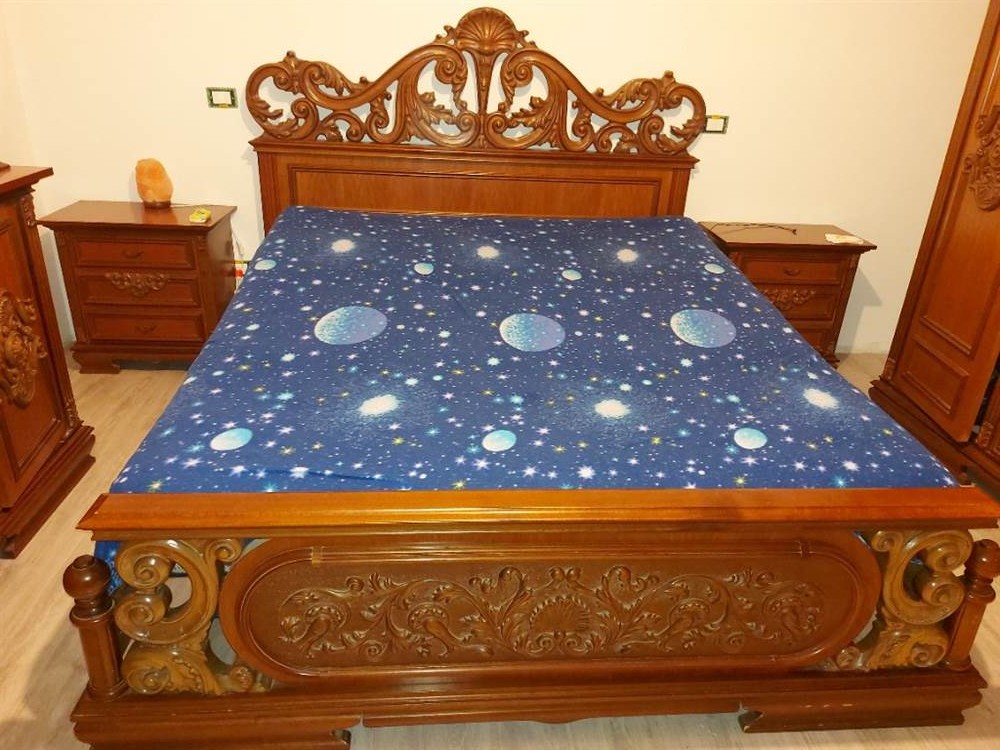 W skład kompletu wchodzi: łoże, 2 x szafka nocna, szafa, komoda z lustrem.
