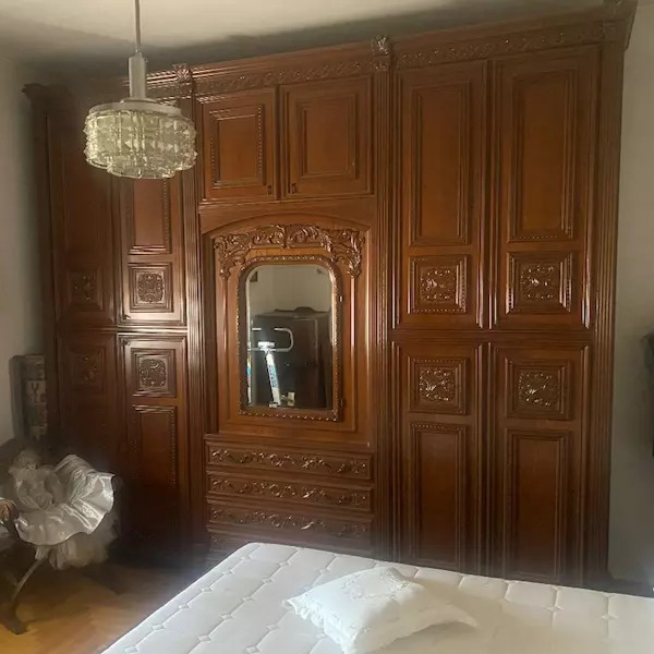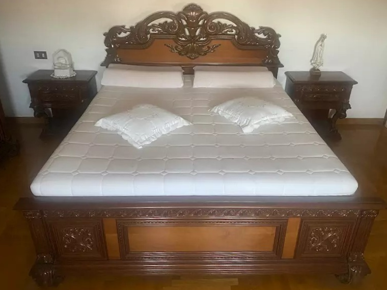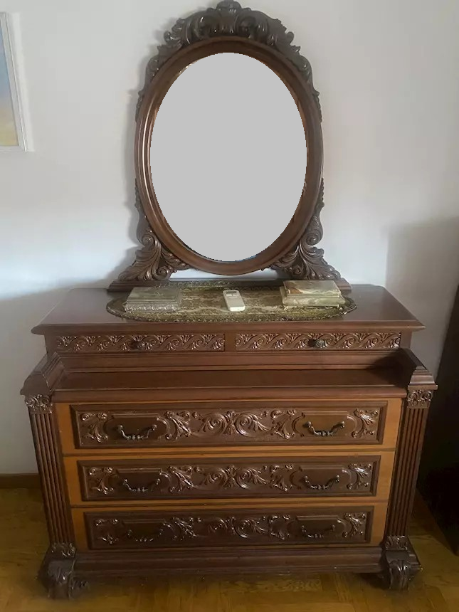 W skład kompletu wchodzi: łoże, 2 x szafka nocna, szafa, komoda z lustrem.