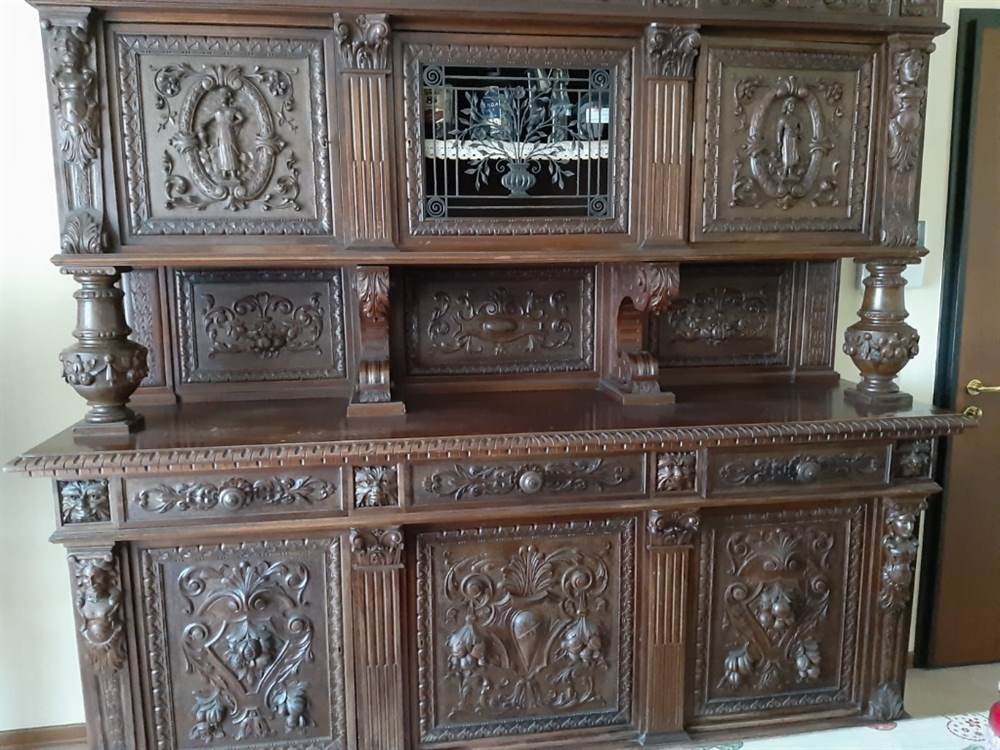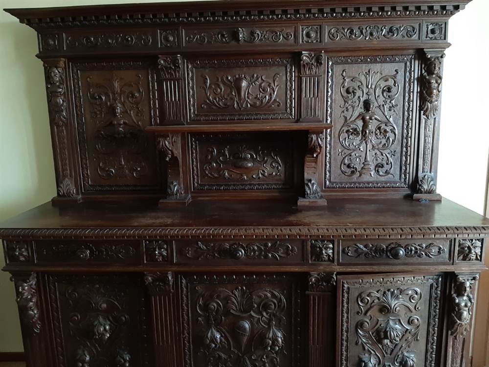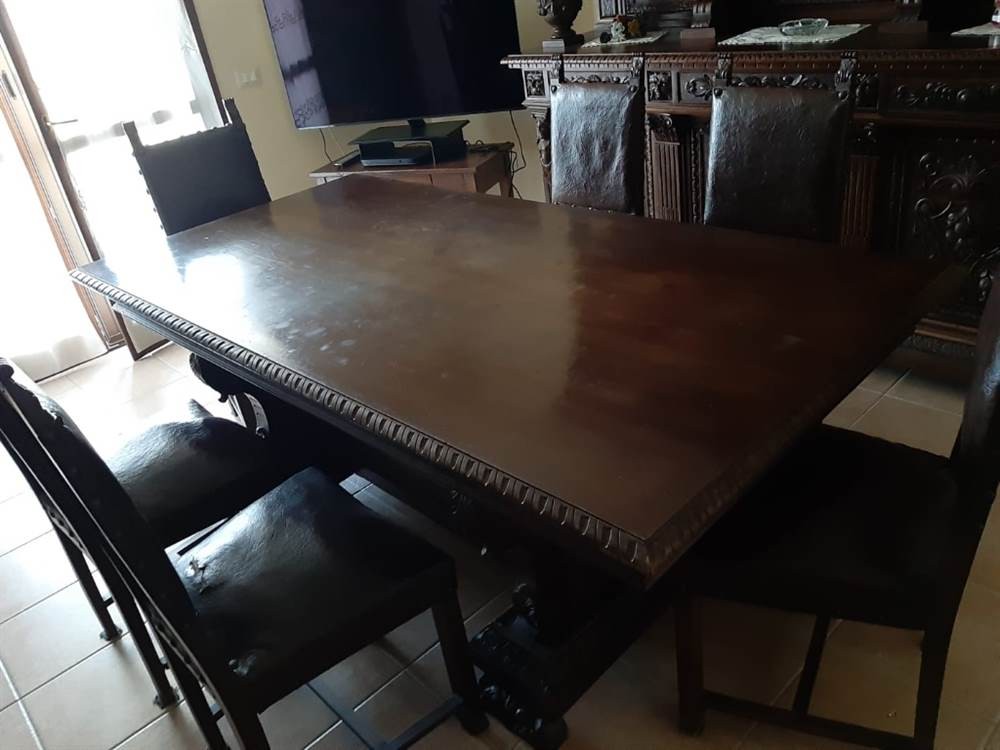 W skład kompletu wchodzi: kredens, pomocnik, stół, krzesła.