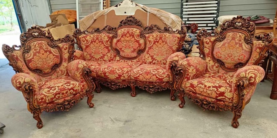 W skład kompletu wchodzi: sofa 3-osobowa, 2 x fotel.