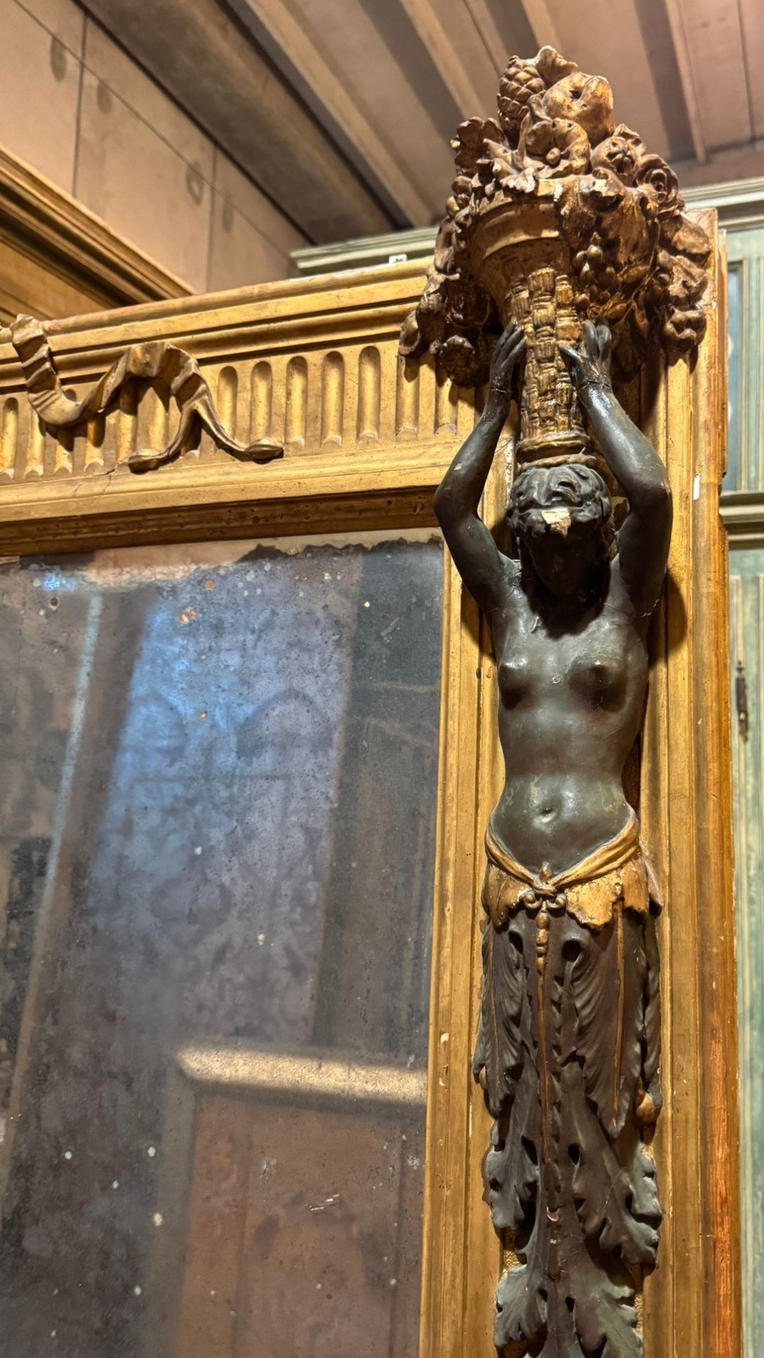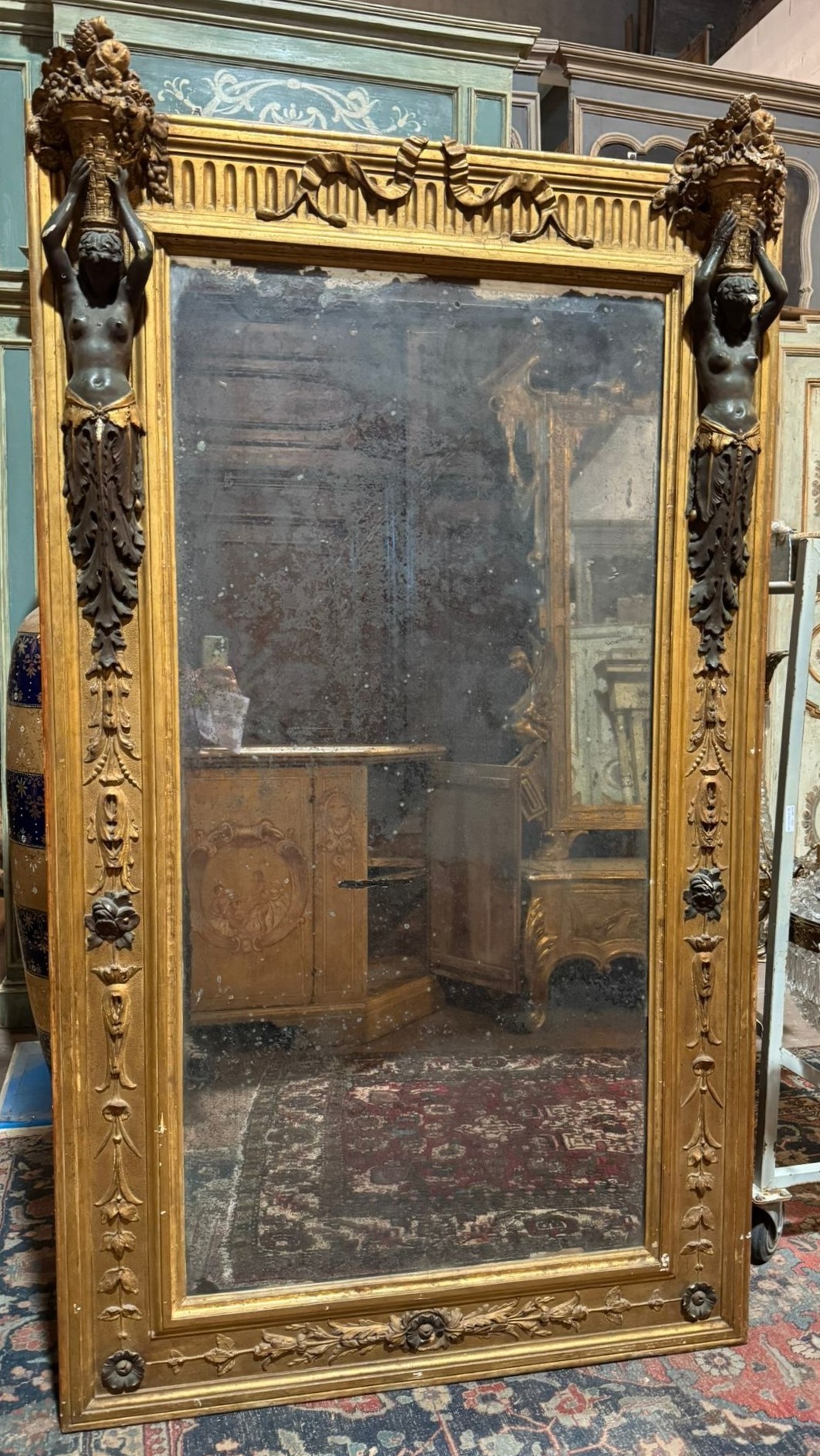 S3816 Duże neoklasycystyczne lustro z kariatydami, XVIII w.