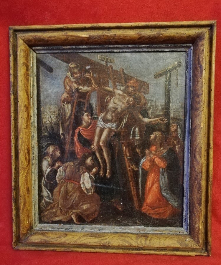 Obraz przedstawia zdjęcie z krzyża Jezusa Chrystusa na Golgocie. W bardzo dobrym stanie.