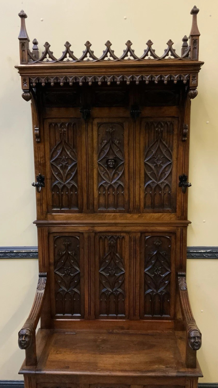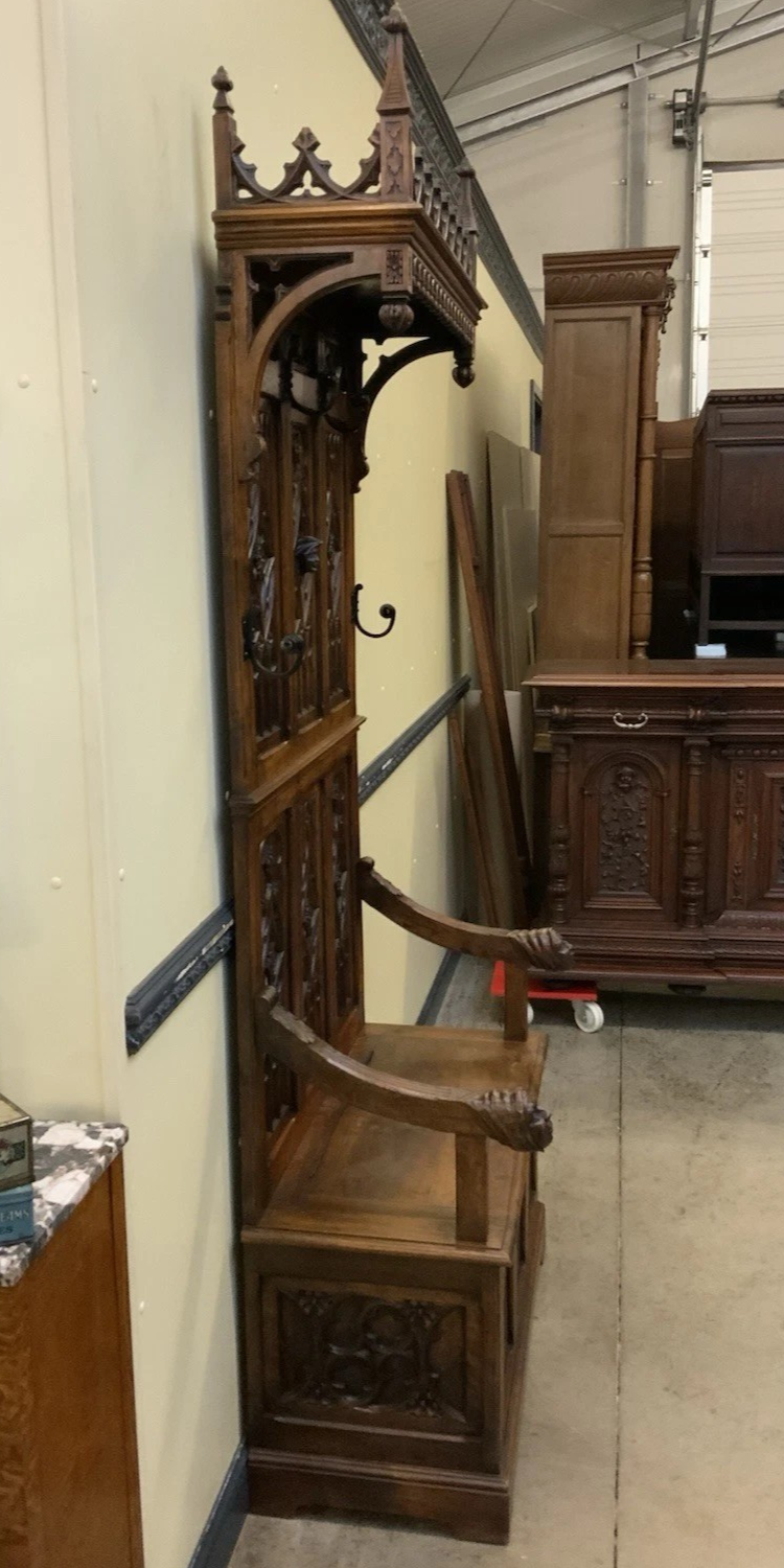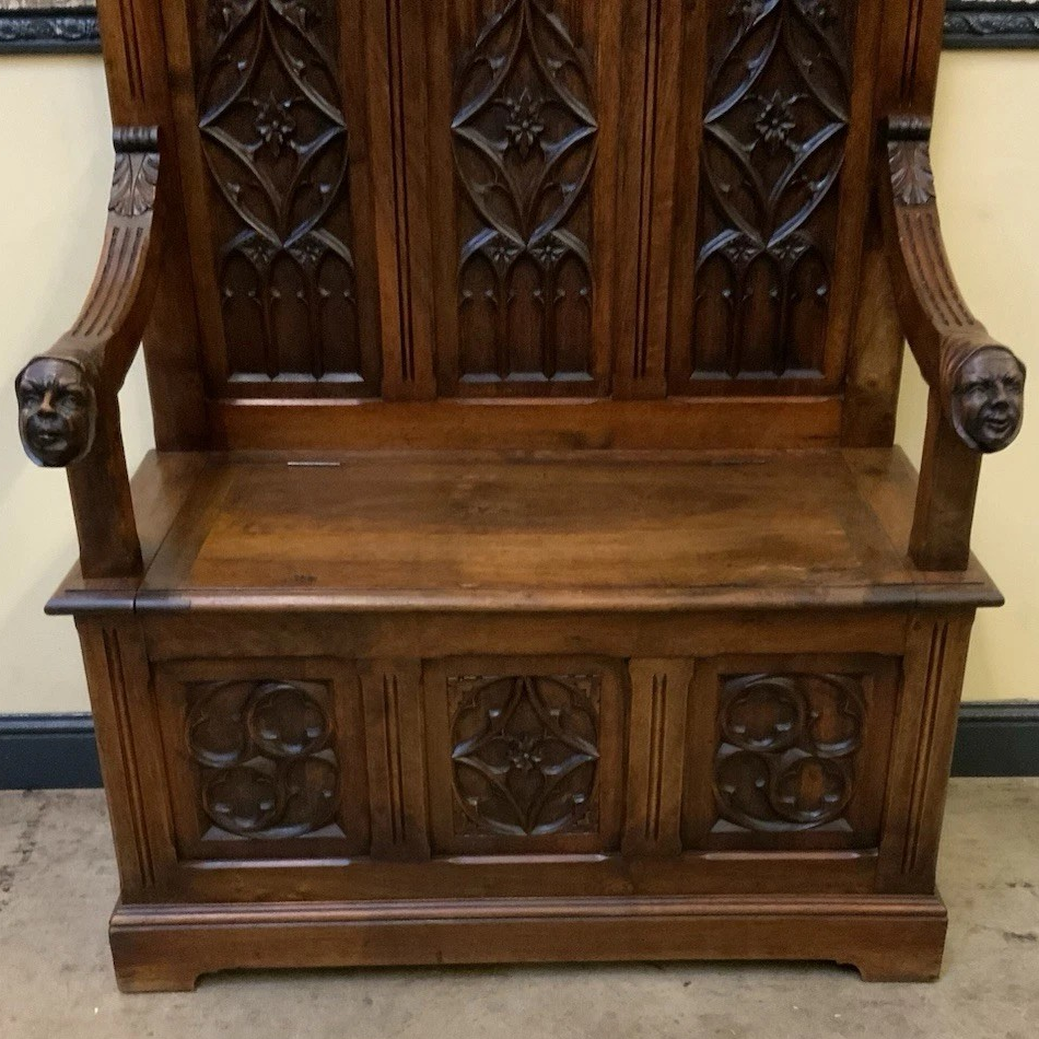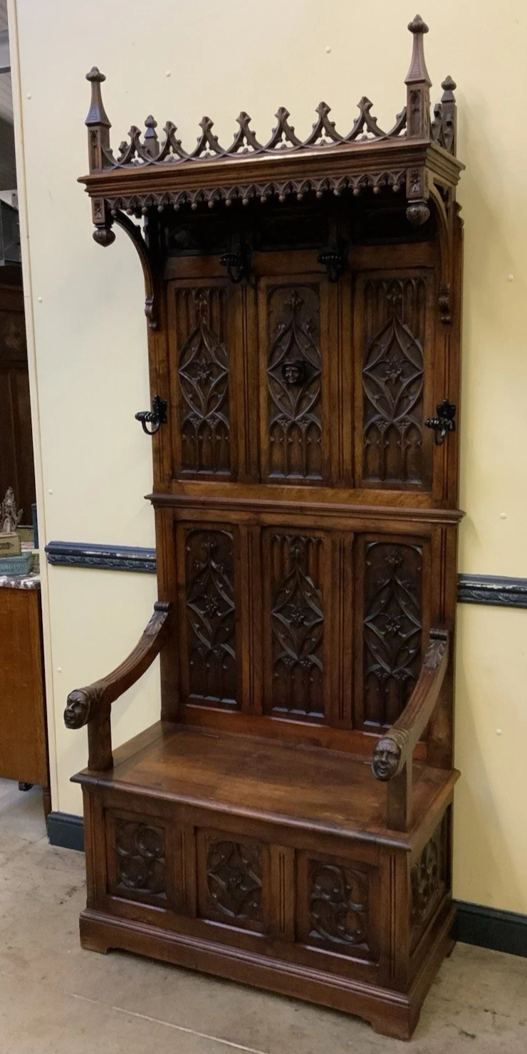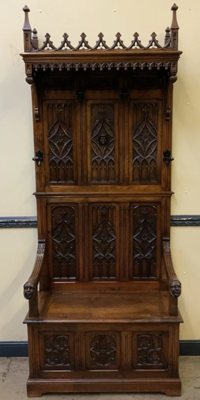 S3928 Neogotycka ławka/skrzynia z wieszakiem, XIX w.