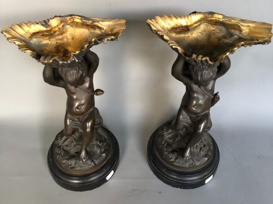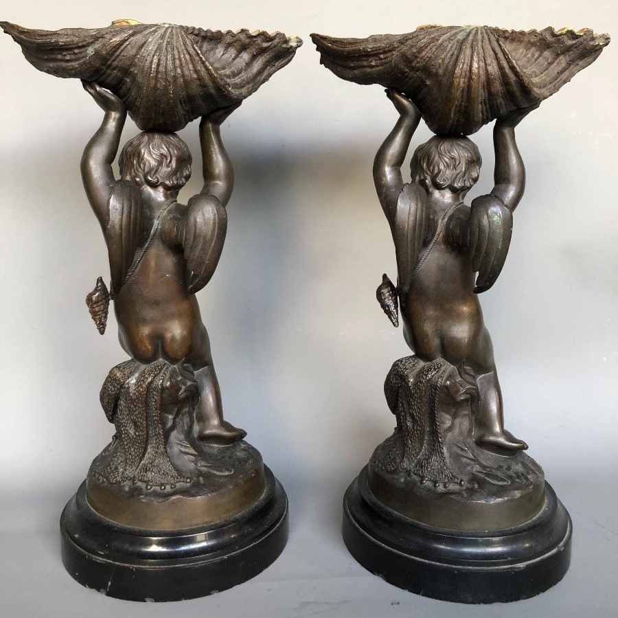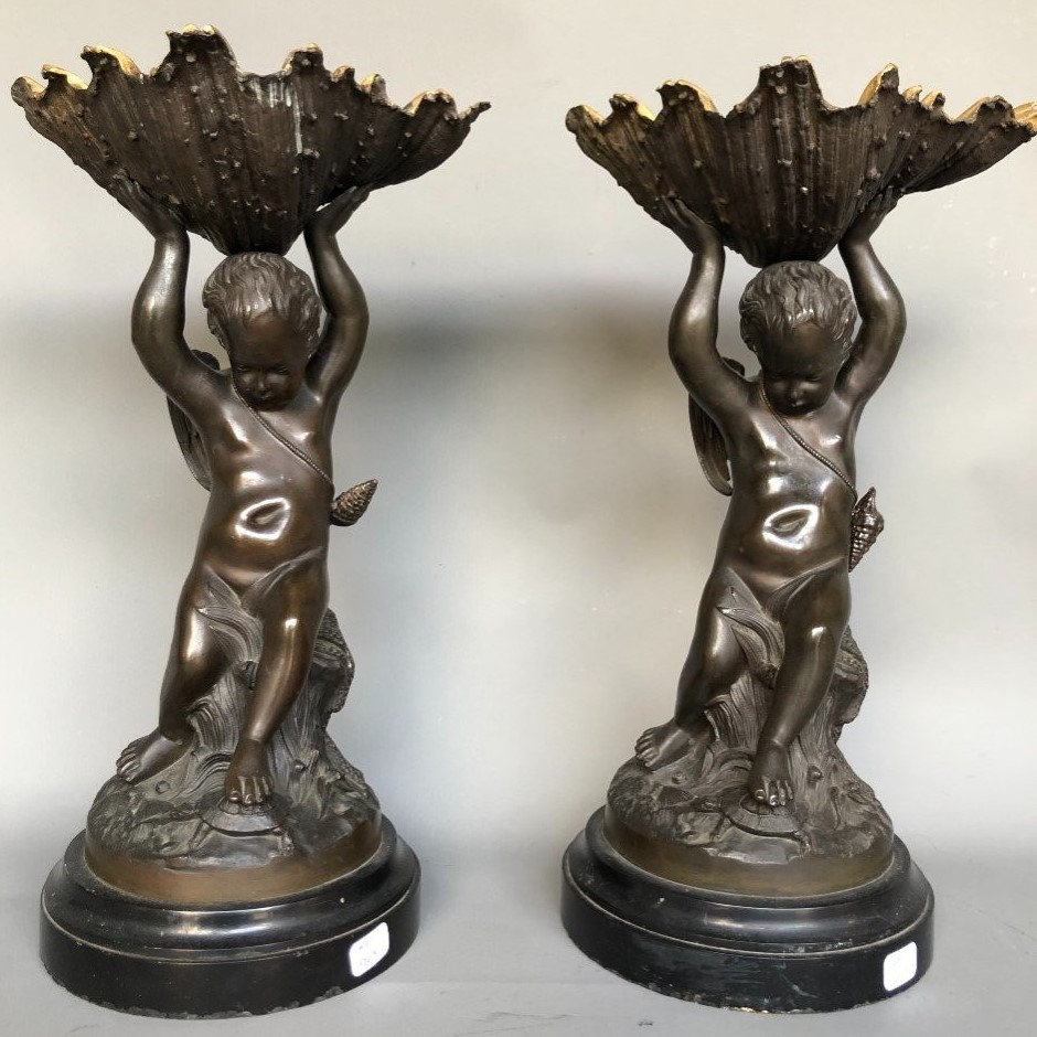 S3970 2 x Putto z muszlami, Rzeźby, XIX w.