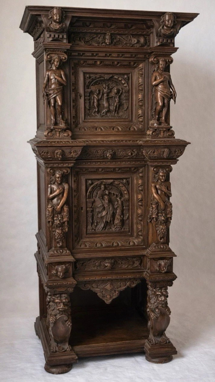 S3977 Bogato rzeźbiona neorenesansowa szafka, XIX w.
