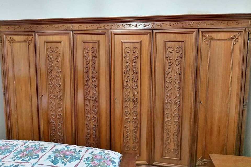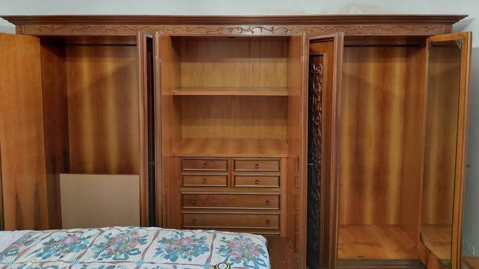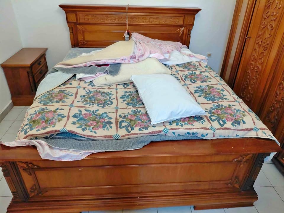 W skład kompletu z drewna wchodzi: łoże, 2 x szafka nocna, szafa, komoda z lustrem.