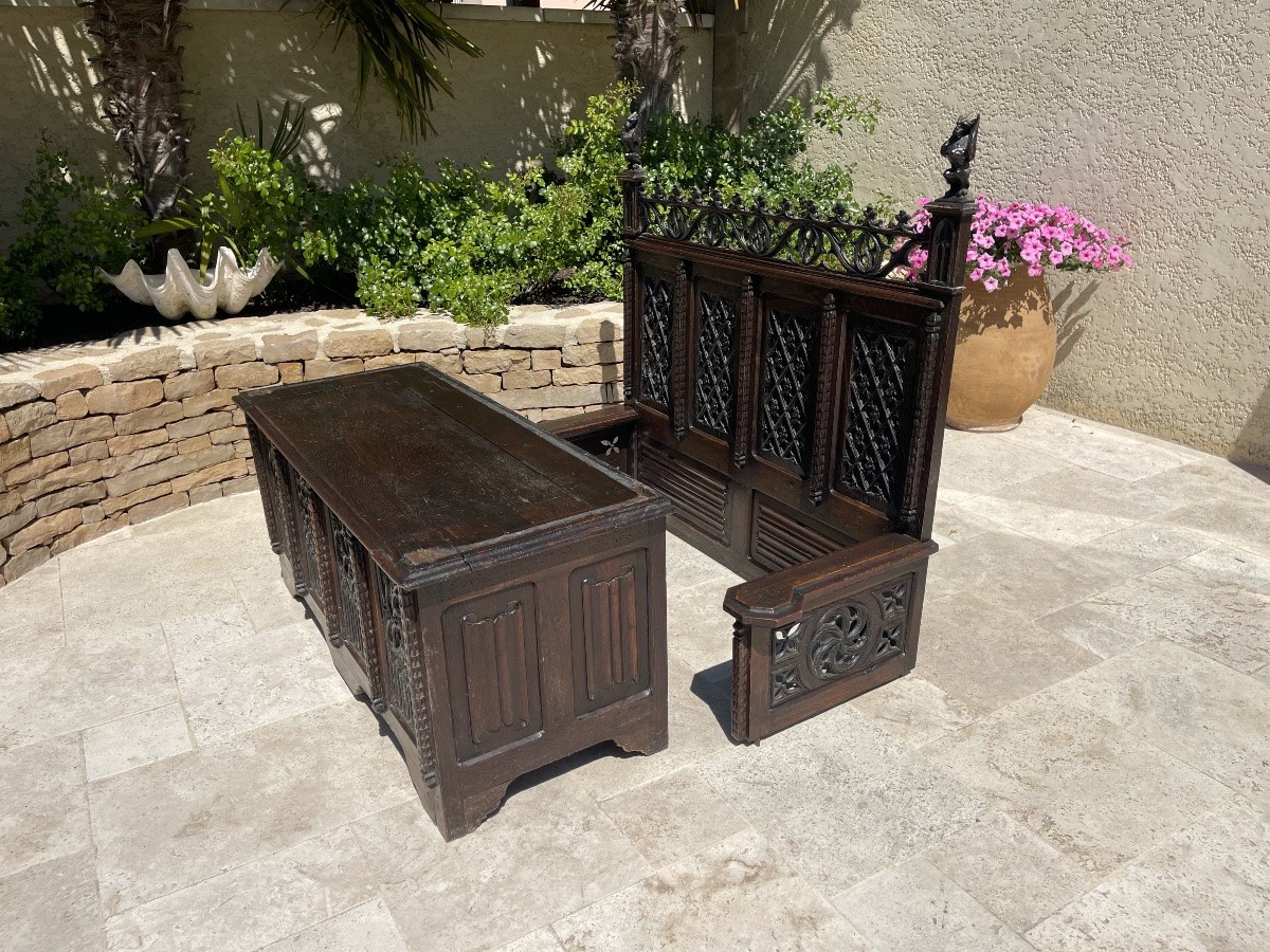 S4011 Gotycka ławka/skrzynia, XIX w.
