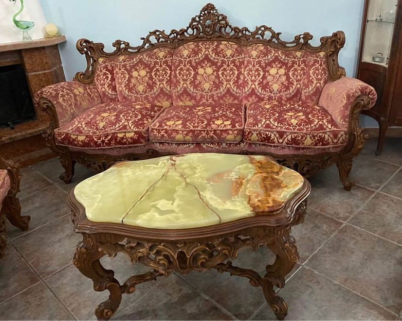 W skład kompletu wchodzi: sofa, 2 x fotel, stolik do kawy.