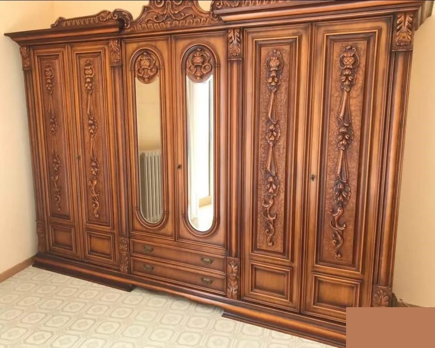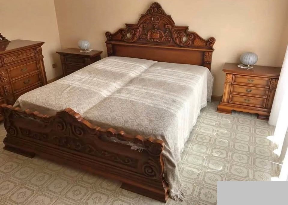 W skład kompletu z drewna wchodzi: łoże, 2 x szafka nocna, szafa, komoda z lustrem.