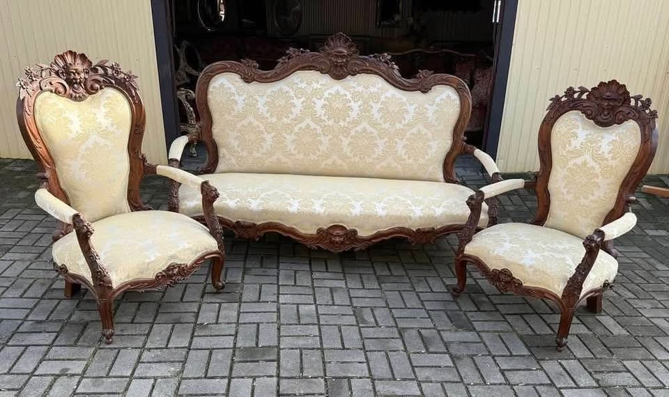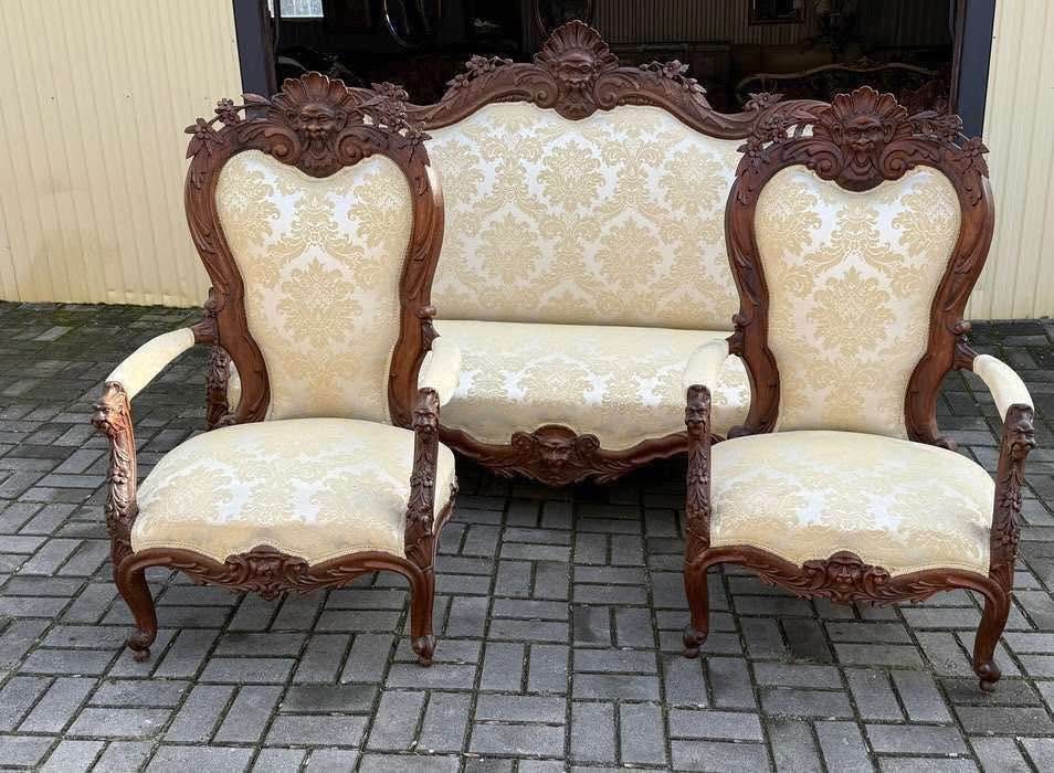 W skład kompletu wchodzi: sofa 3-osobowa, 2 x fotel.