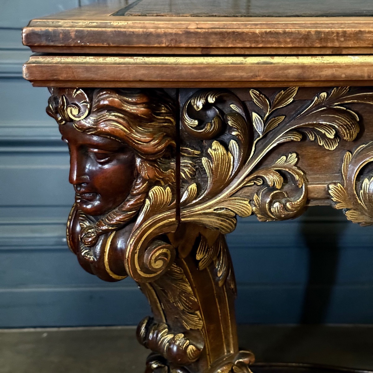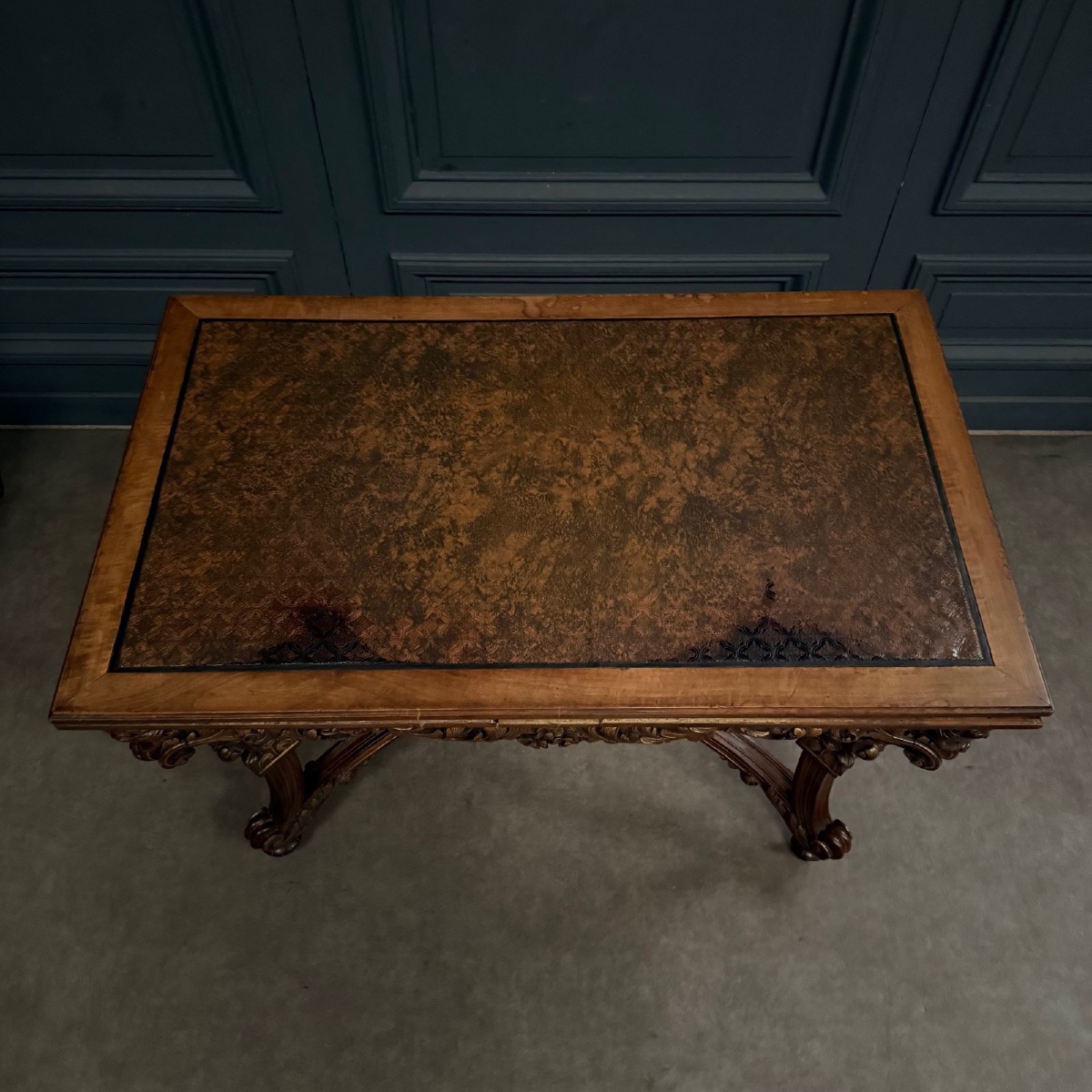 Wyjątkowy urok tego eleganckiego stołu podkreśla starannie aplikowana skóra, która dodaje niepowtarzalnego charakteru. Stylowe, klasyczne linie oraz dbałość o detale sprawiają, że stół ten stanie się centralnym punktem każdego wnętrza, łącząc w sobie zarówno funkcjonalność, jak i estetykę. Idealny do salonów, jadalni czy reprezentacyjnych przestrzeni, ten mebel to prawdziwa inwestycja w ponadczasowy styl i luksus.