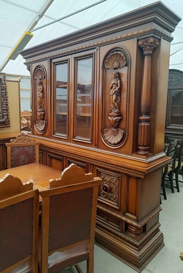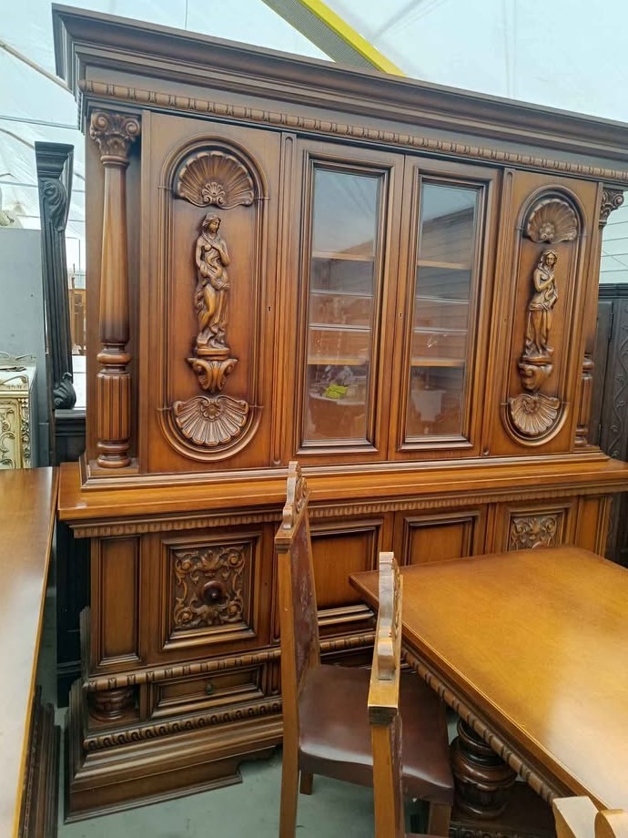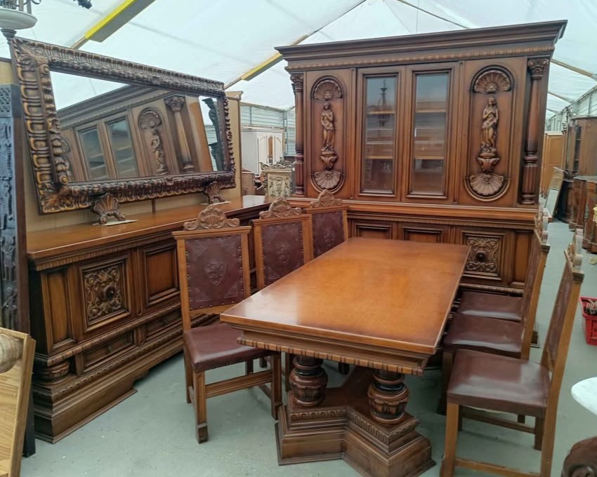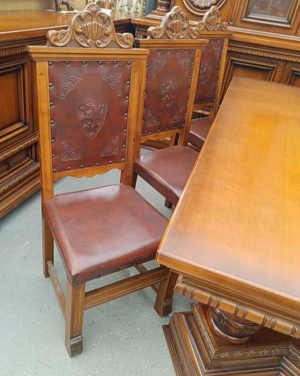 W skład kompletu wchodzi: kredens, bufet z lustrem, stół, 6 x krzesło.
