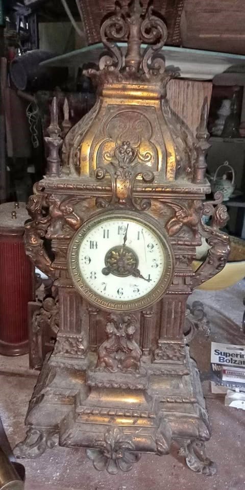 W skład kompletu z brązu wchodzi: zegar, 2 x kandelabr.