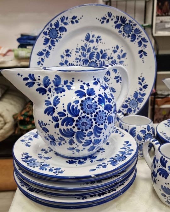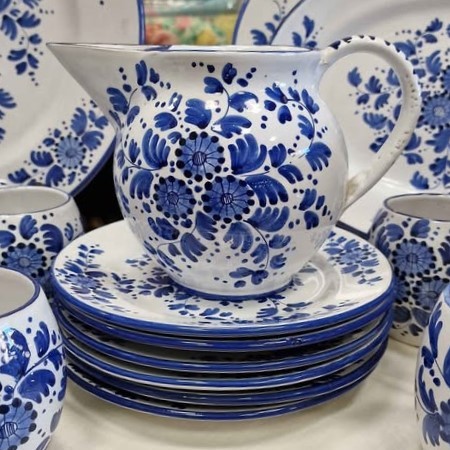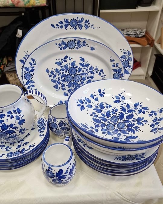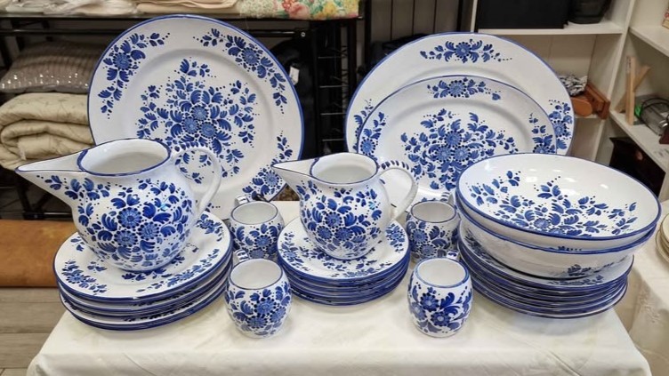 W skład kompletu porcelany wchodzi: 6 x głęboki talerz, 6 x płaski talerz, 6 x talerzyk deserowy, 2 x salaterka, okrągły talerz do serwowania, 2 x owalny talerz do serwowania, 2 x dzbanek, 4 x filiżanka.