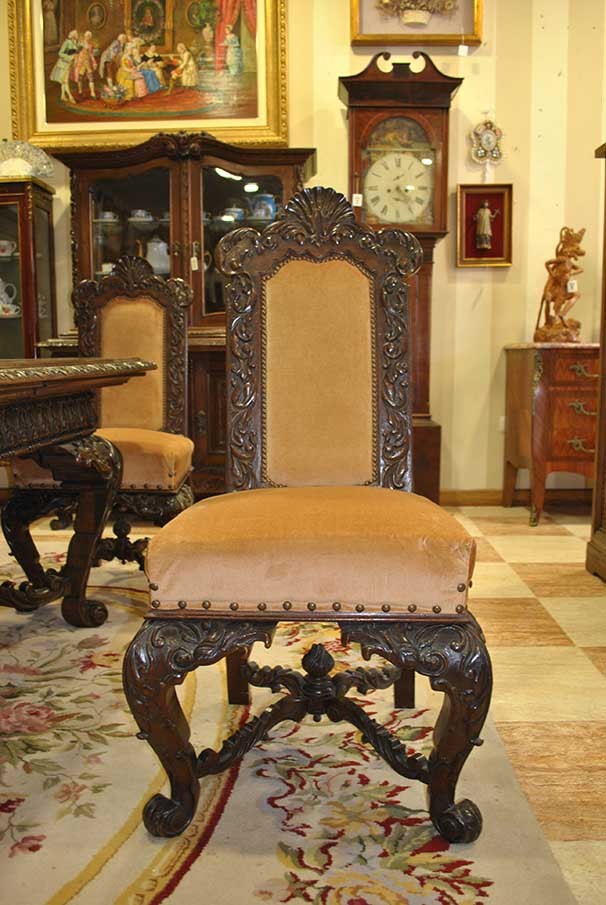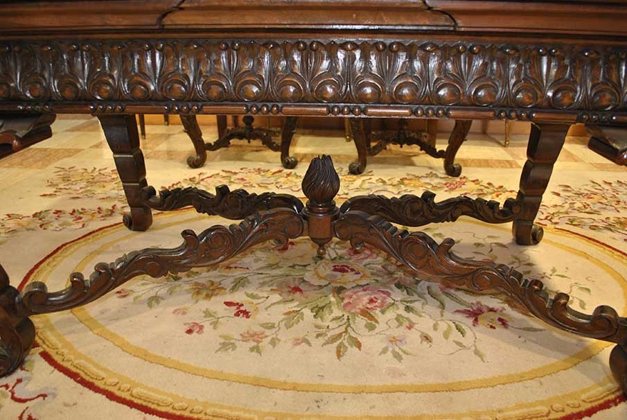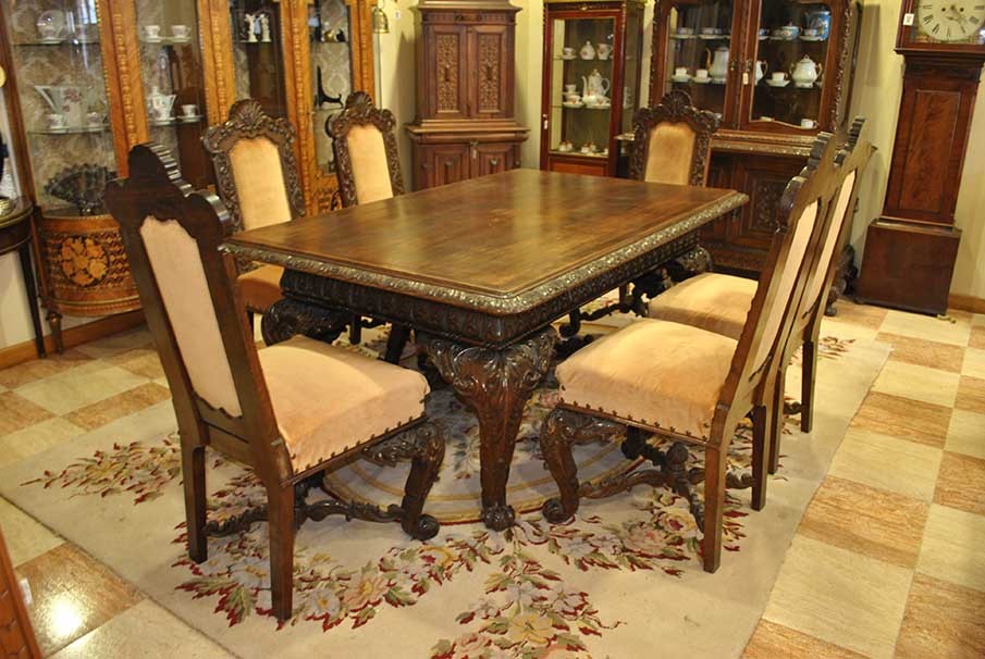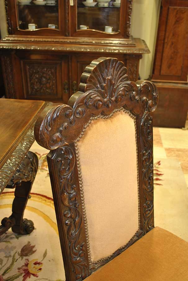 Zestaw wykonany z bogatego ręcznie rzeźbionego drewna kasztanowca.