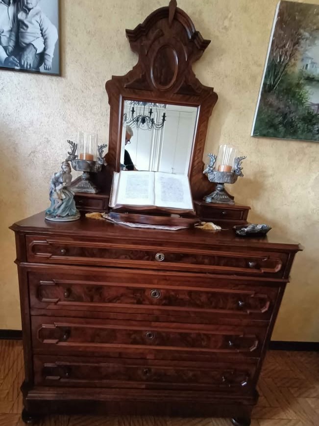 W skład kompletu wchodzi: 2 x łóżko, 2 x szafka nocna, komoda z lustrem.
