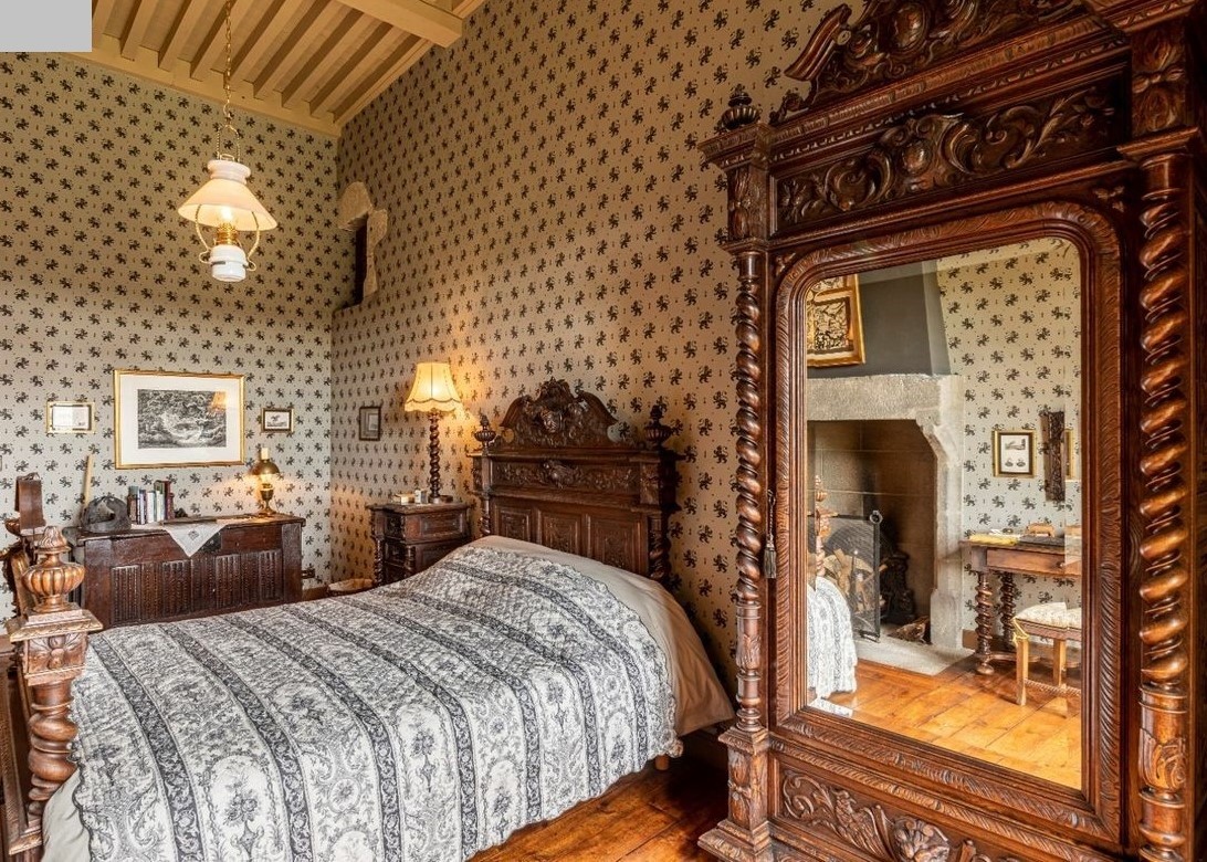 W skład kompletu z drewna wchodzi: łoże, szafka nocna, lampka, szafa z lustrem, stolik, lustro.