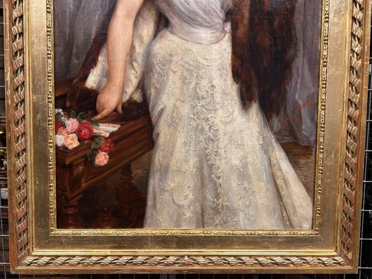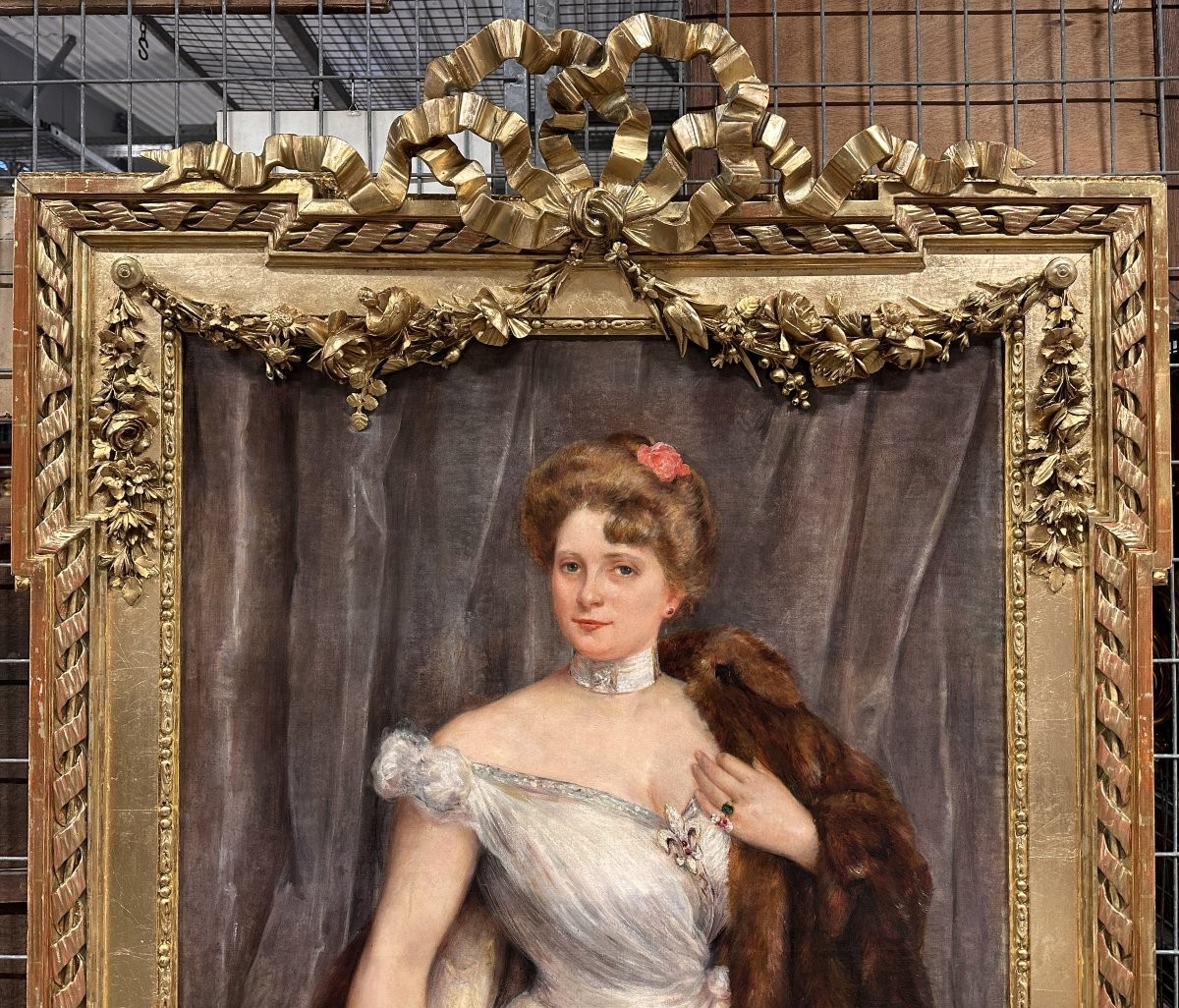 S4446 Portret eleganckiej kobiety, Olej na płótnie, XIX w.