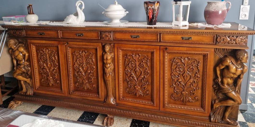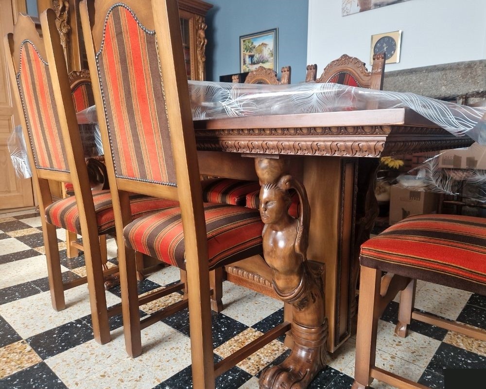 W skład kompletu z drewna wchodzi: kredens, bufet, stół, 6 x krzesło.