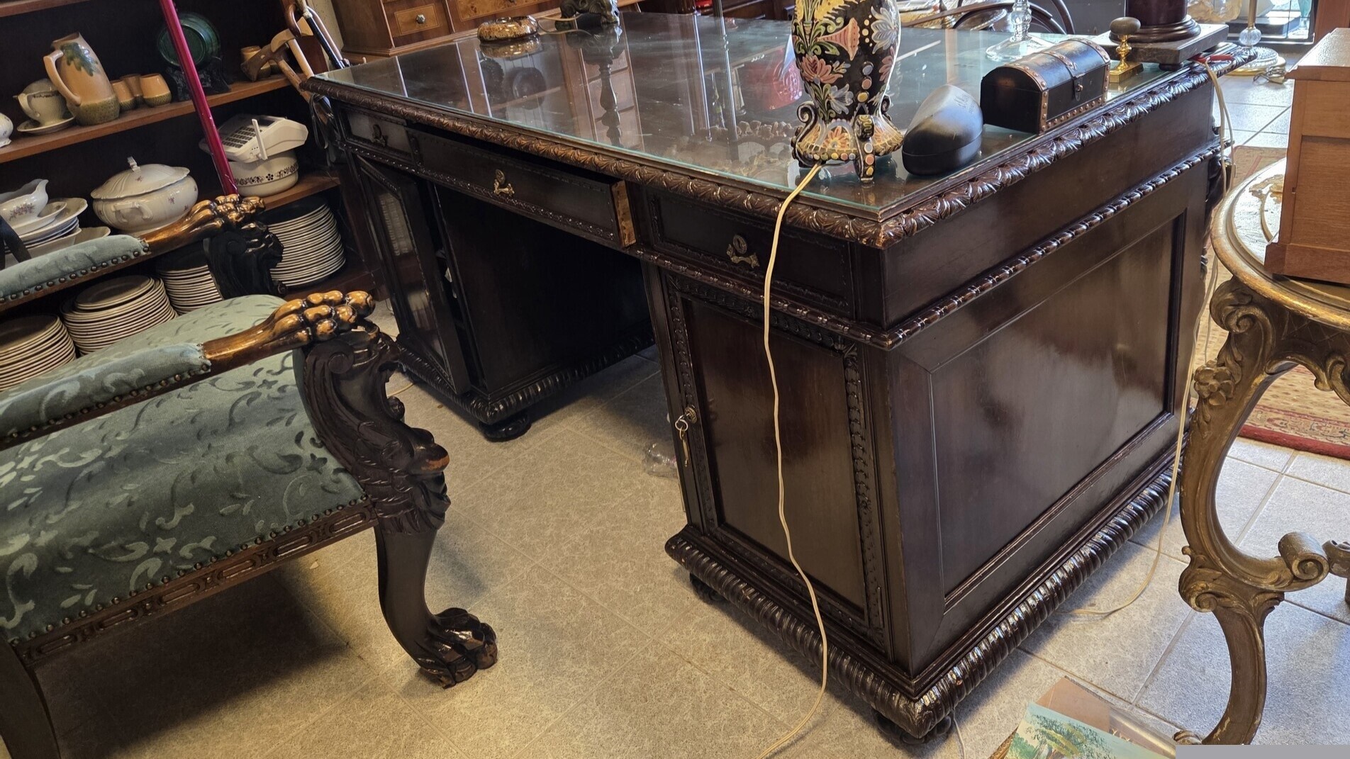S4503 Neorenesansowe biurko + fotel, XIX w.