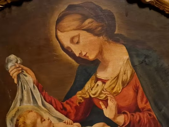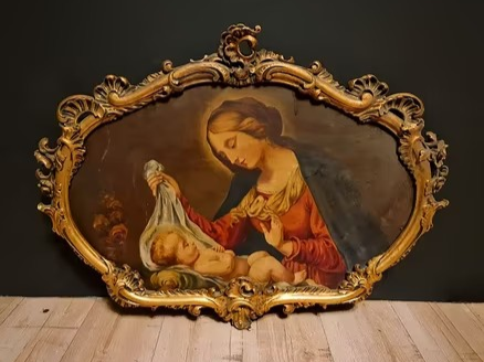 S513 Madonna z Dzieciątkiem, Olej na drewnie, XX w.