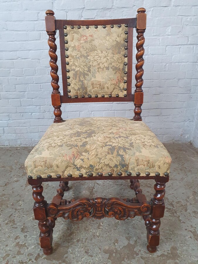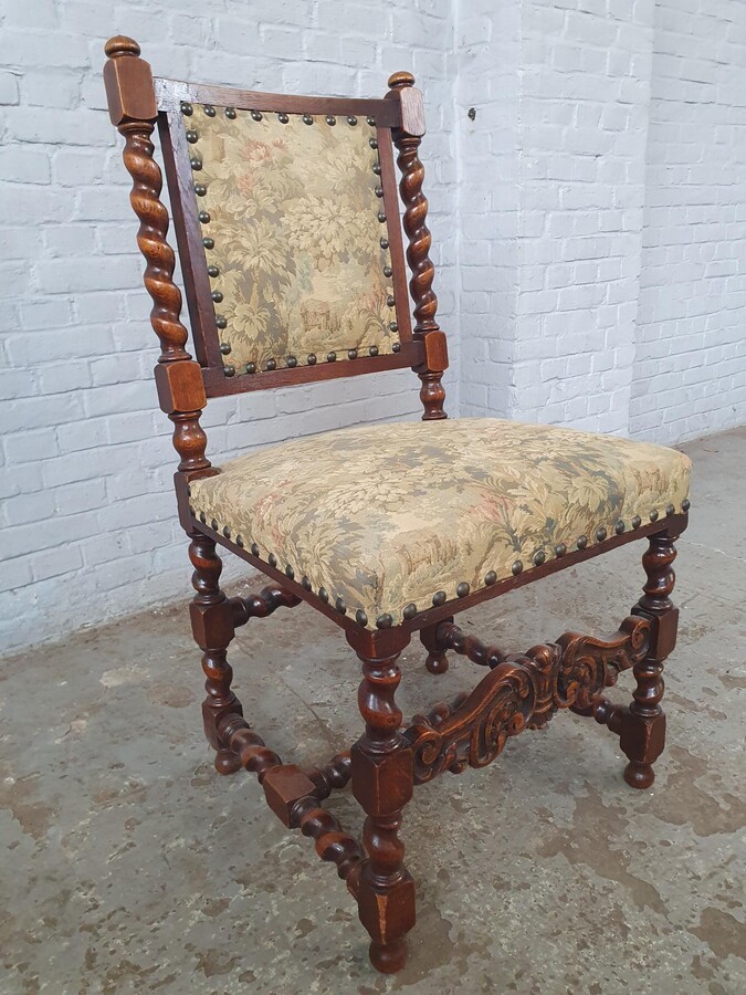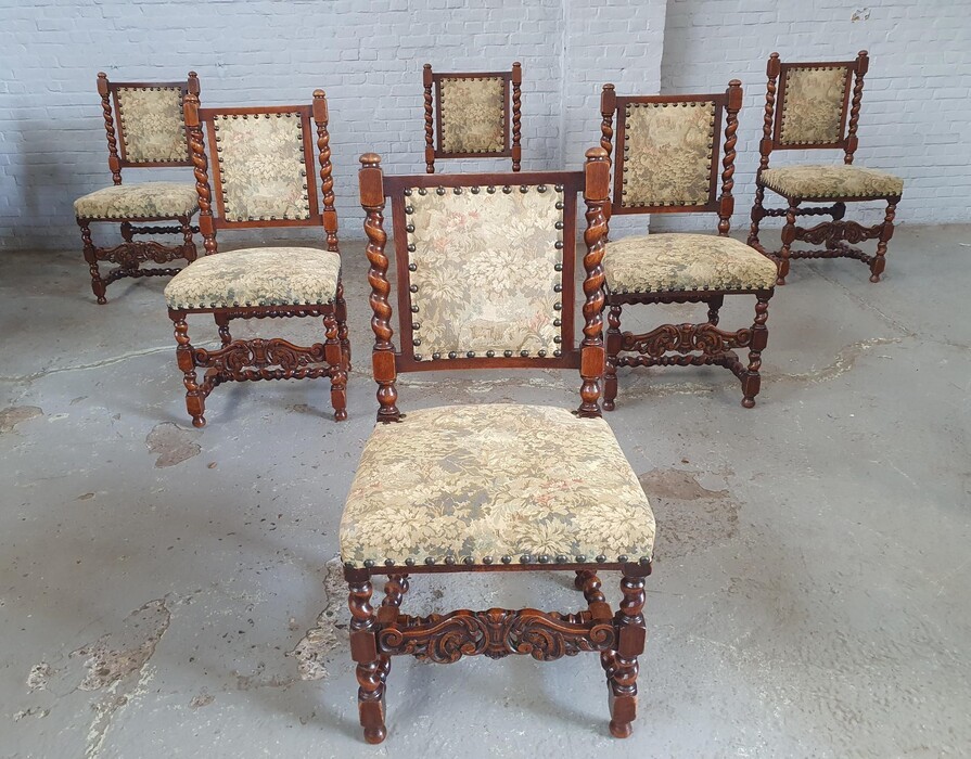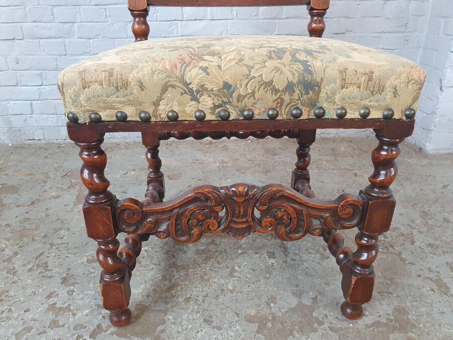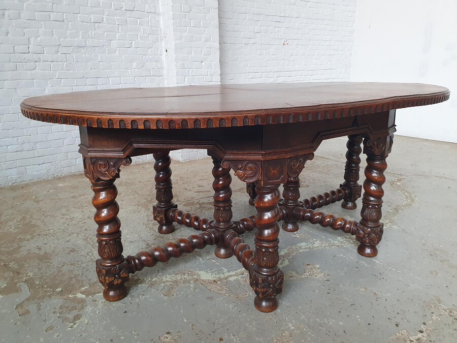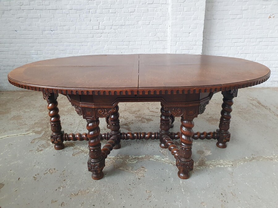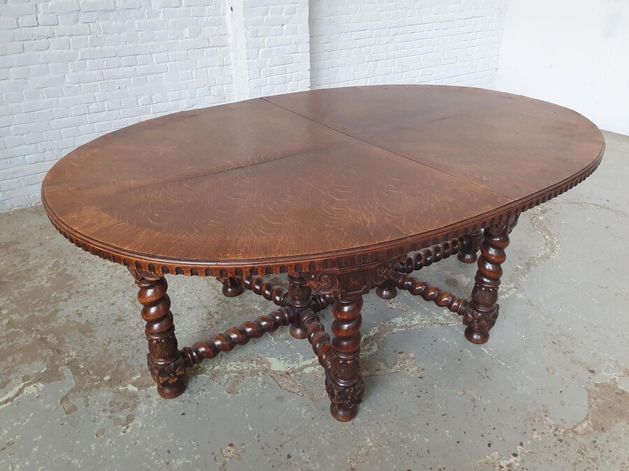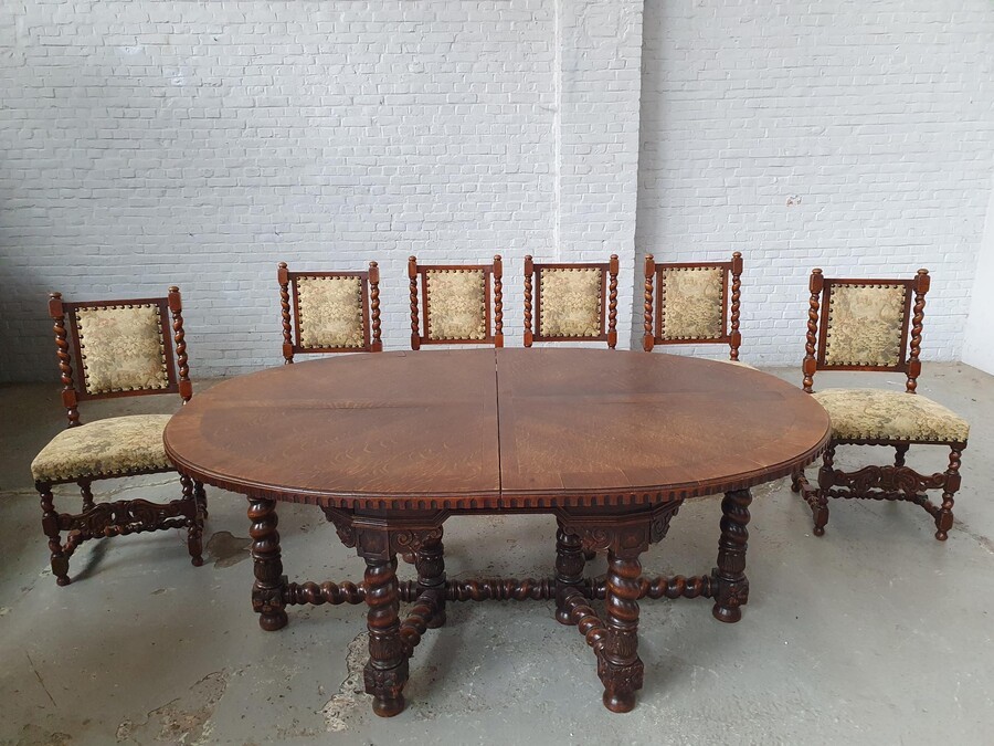 W skład belgijskiego kompletu z drewna dębowego wchodzą: stół, 6 x krzesło.