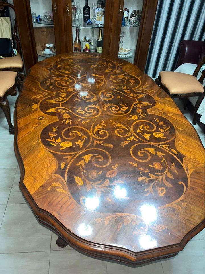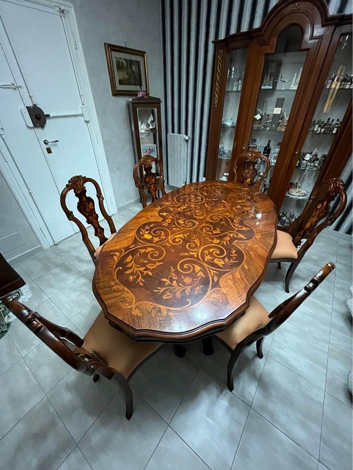 W skład kompletu wchodzą: stół, 6 x krzesło.