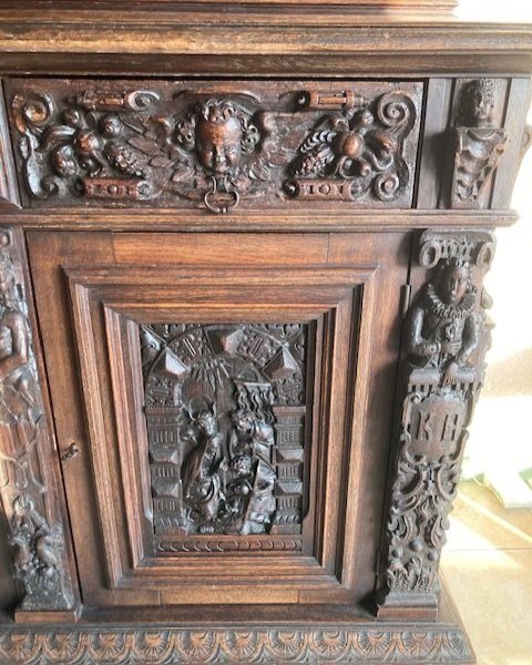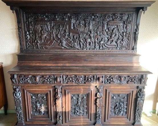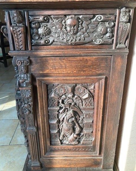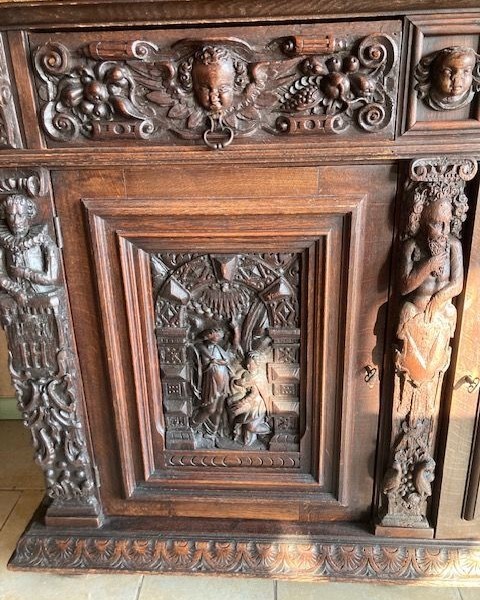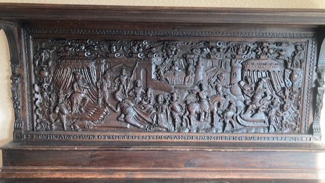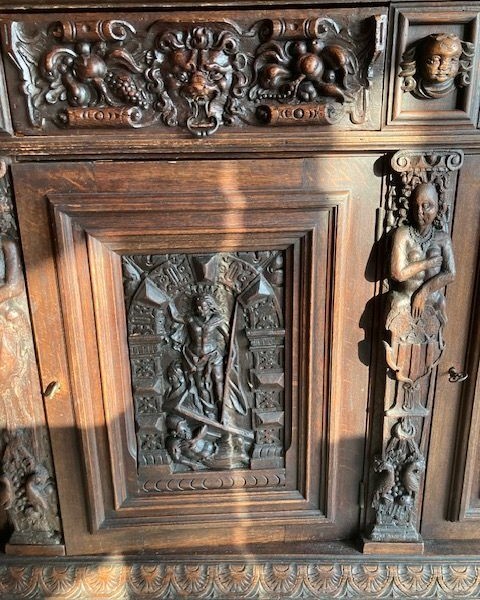 Rzeźbienia na drzwiach przedstawiają biblijne sceny