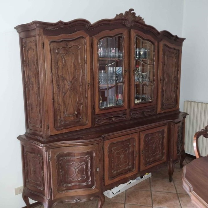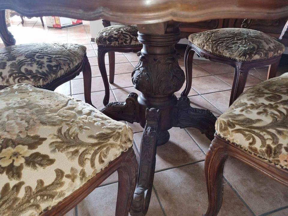 W skład kompletu wchodzi: stół, 6 x krzesło, kredens, sofa 3-osobowa, 2 x fotel, stolik do kawy.