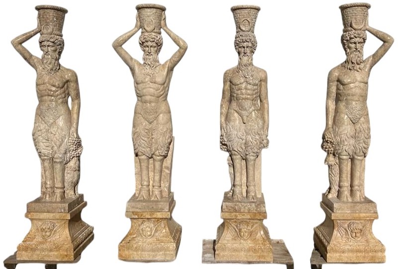 W skład kompletu z marmuru wchodzą cztery rzeźby faunów.