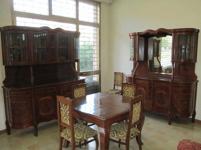 W skład kompletu wchodzi: 2 x kredens, stół, 5 x krzesło