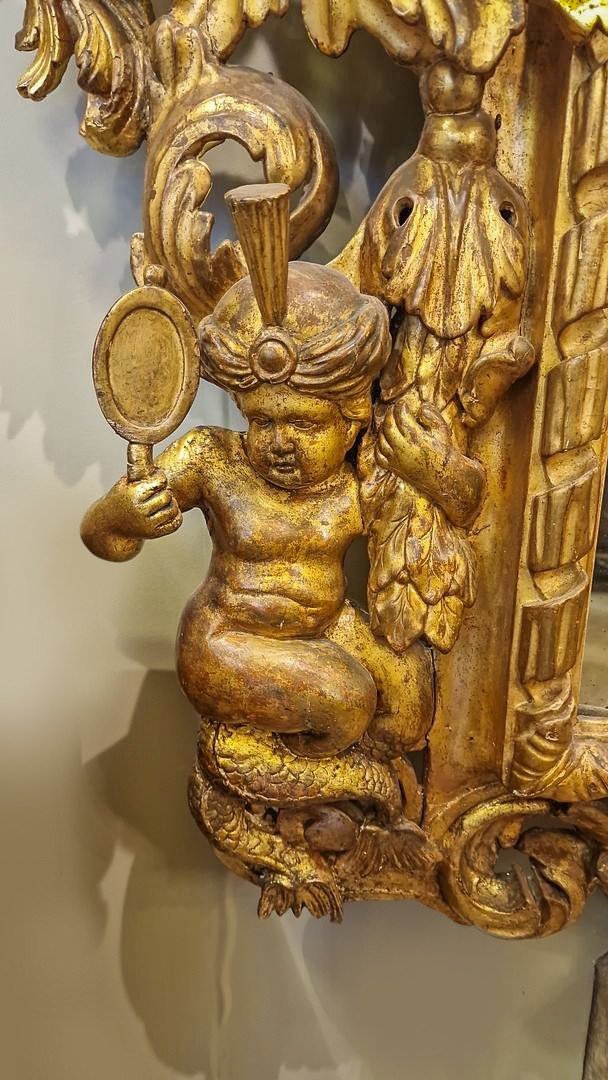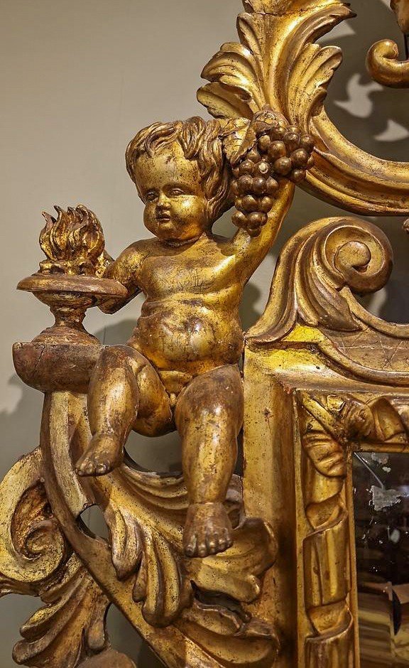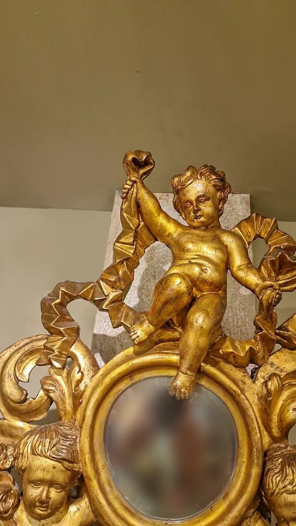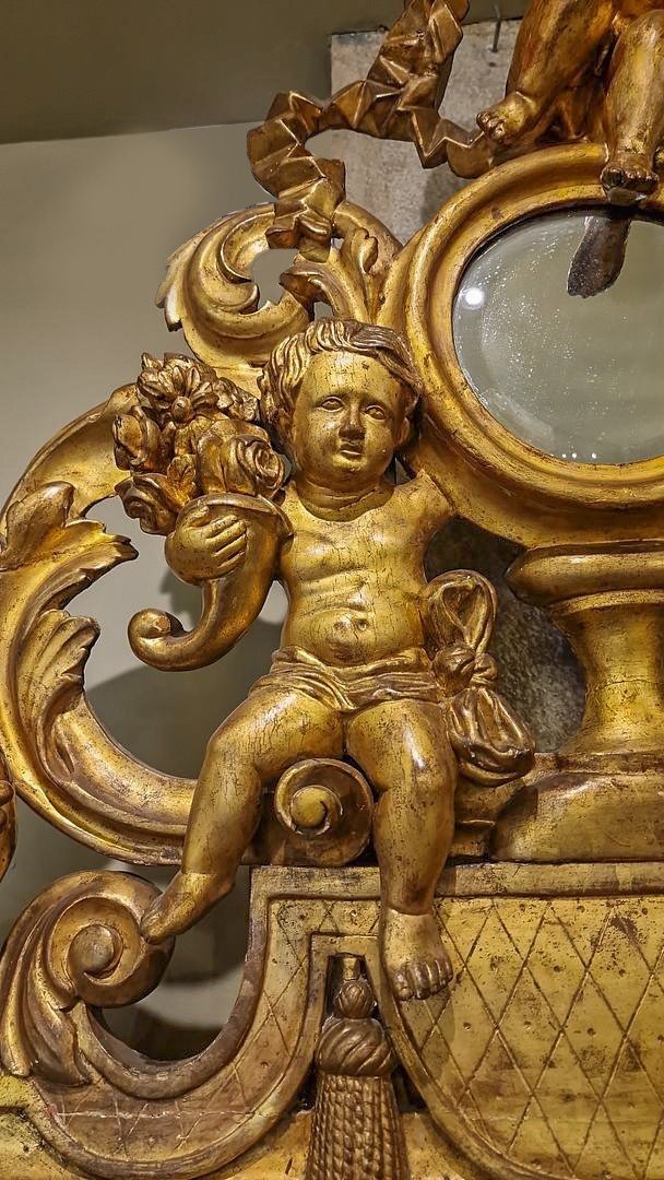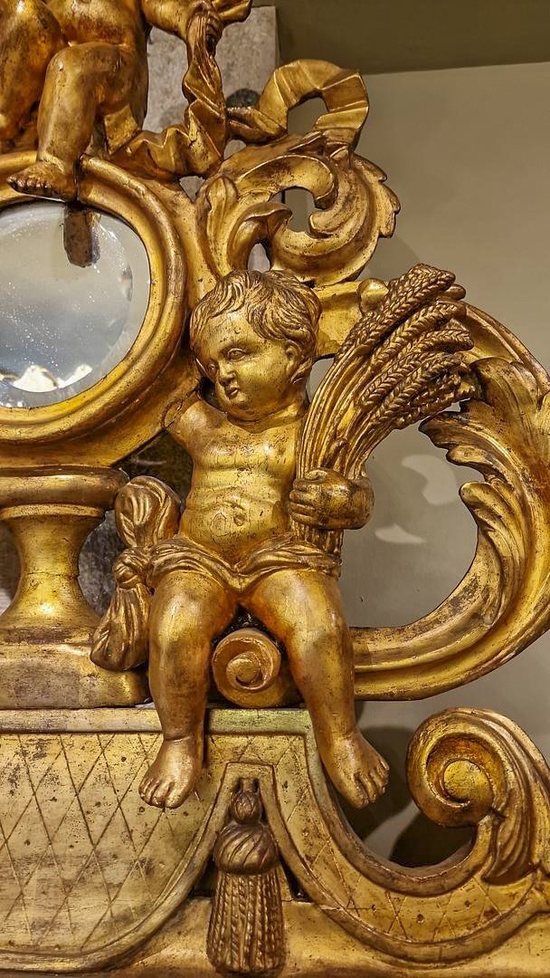 K6 Złocone lustro drewniane z putti z czterech pór roku, Włochy XVIII w.