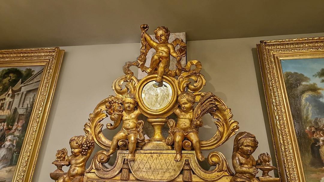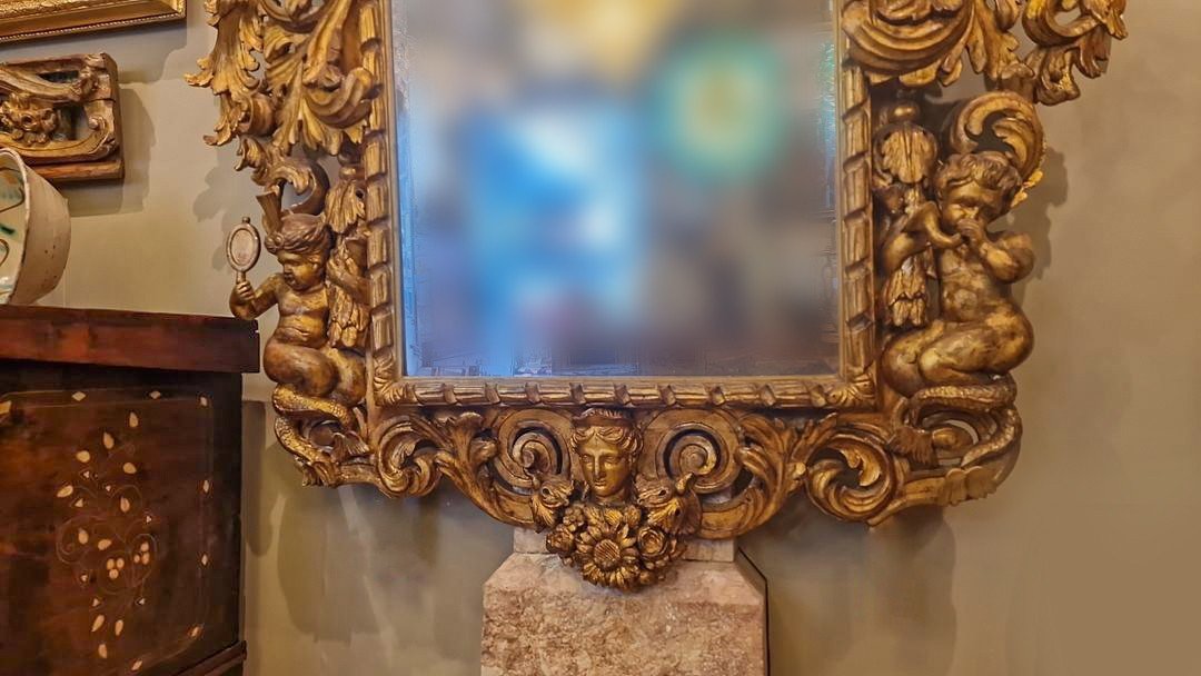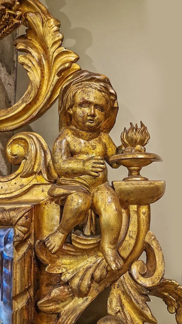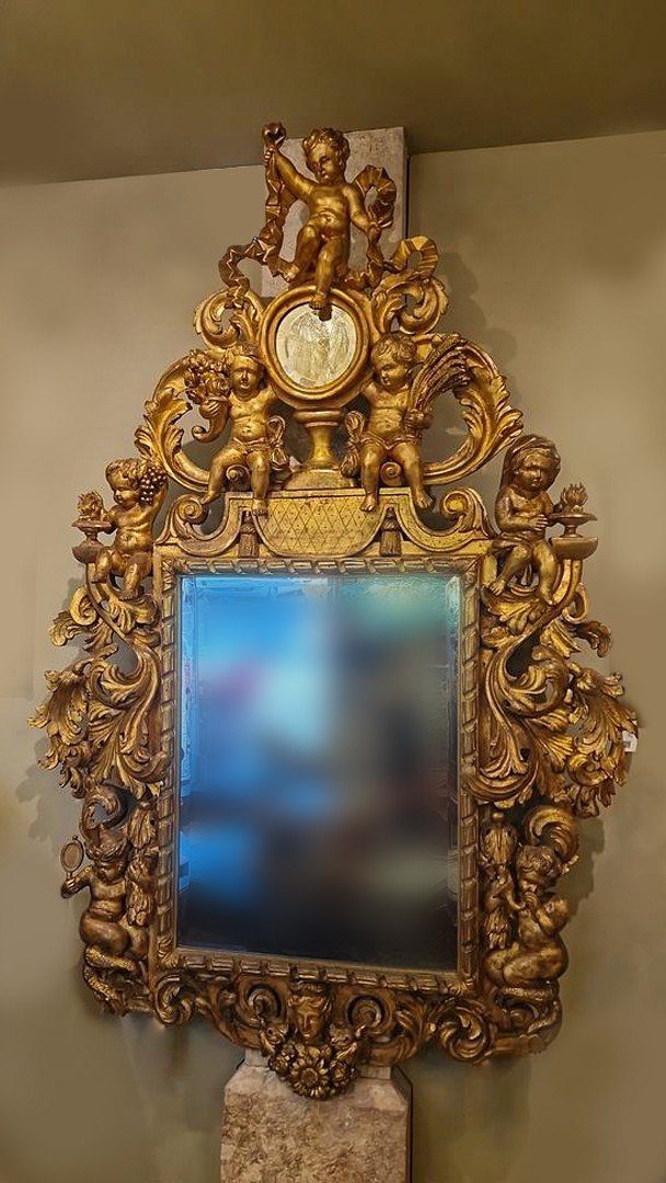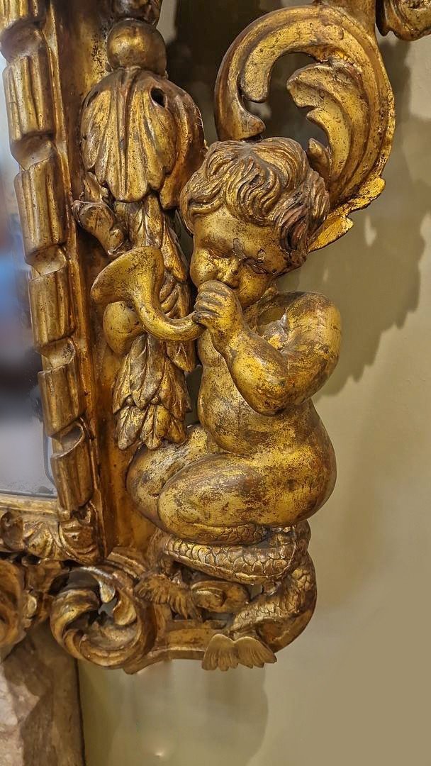 K6 Złocone lustro drewniane z putti z czterech pór roku, Włochy XVIII w.