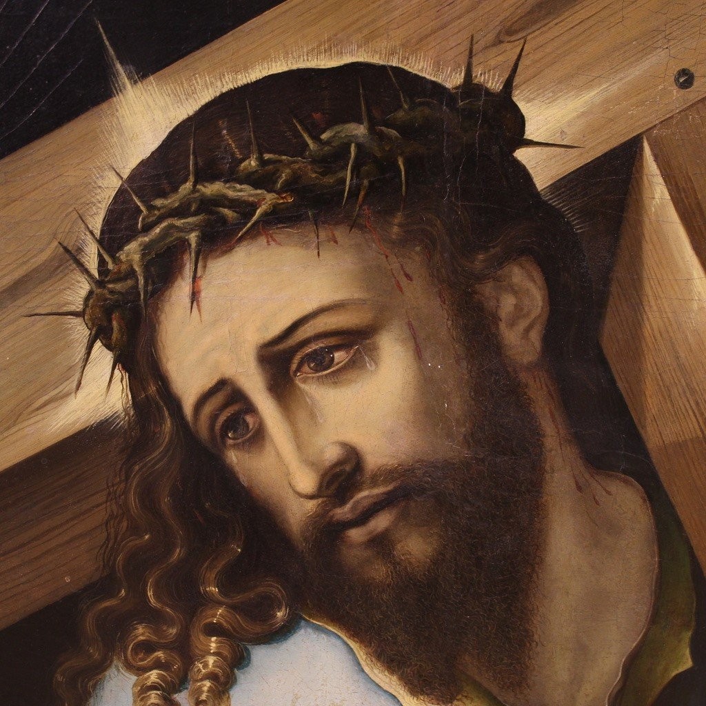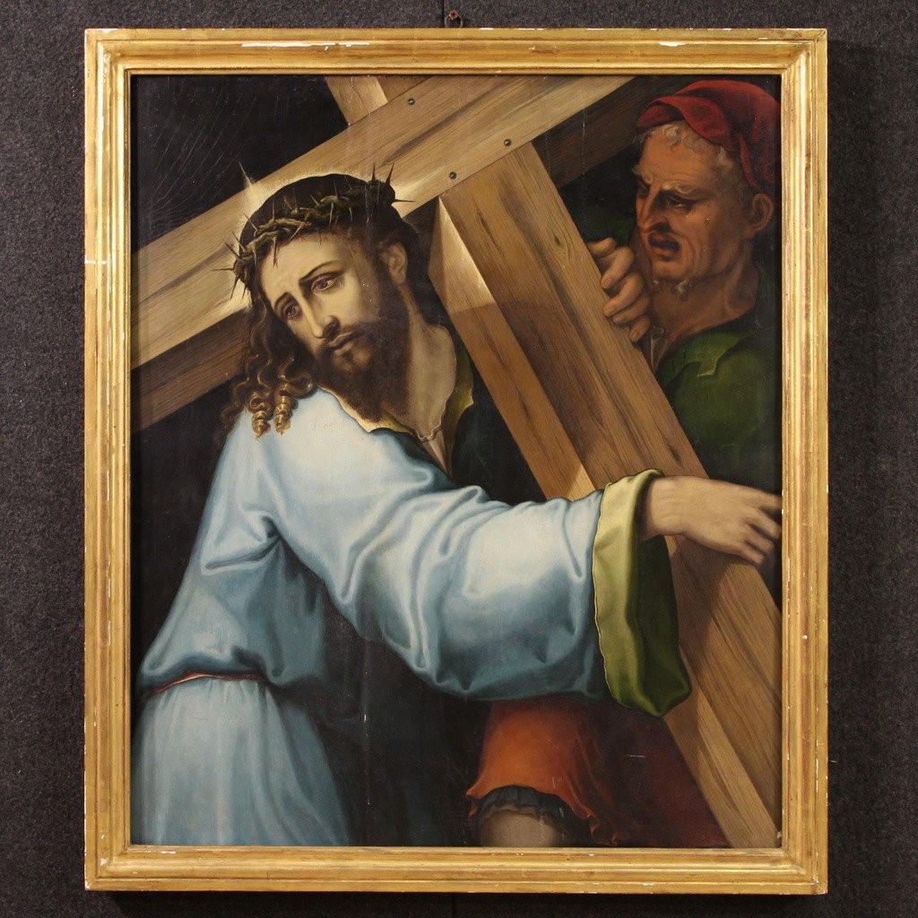 S2507 Chrystus dźwigający krzyż, Olej na drewnie, XVII w.