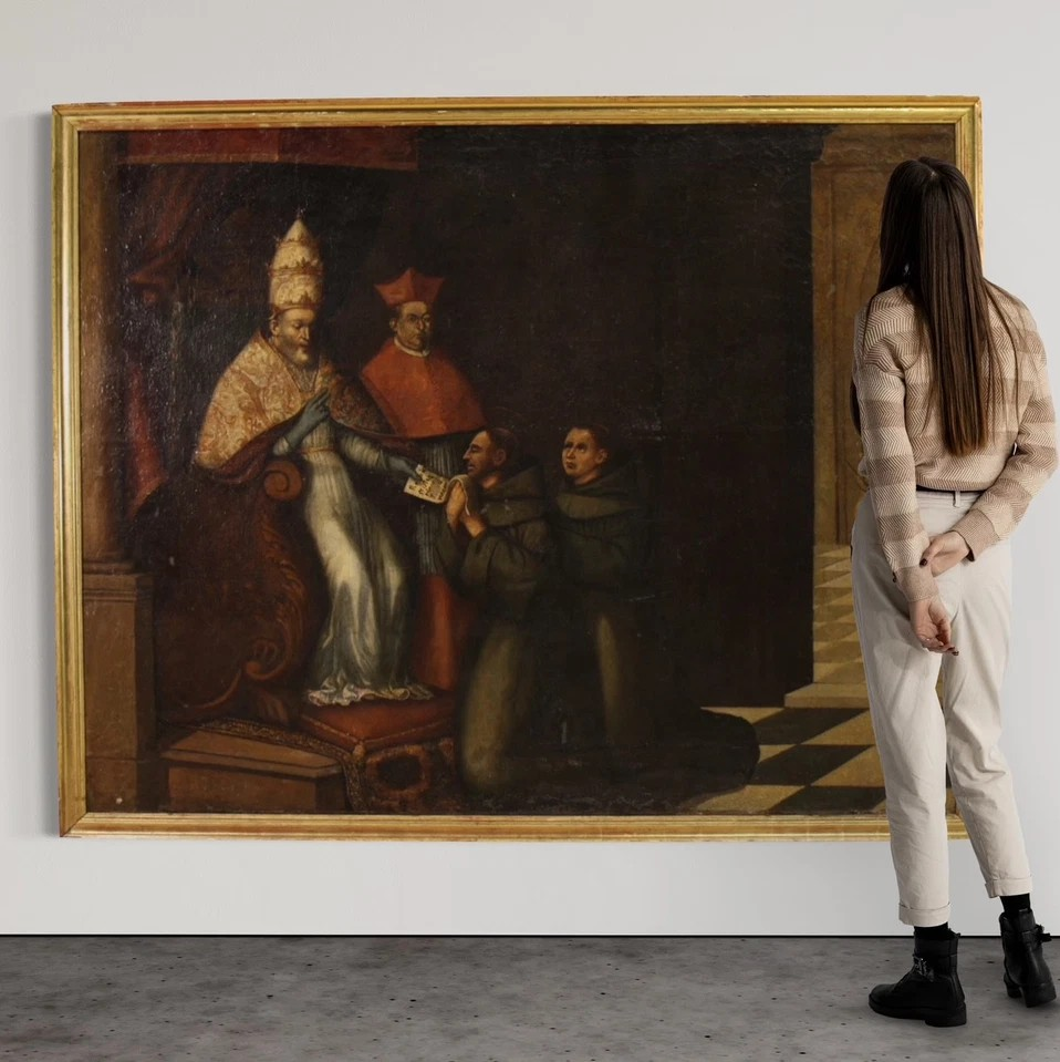 S3386 Papież zatwierdza regułę św. Franciszka, Duży olej na płótnie, XVII w.