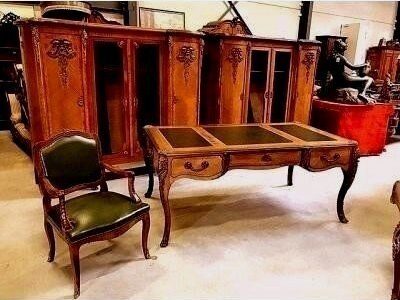 W skład kompletu wchodzi: 2 x biblioteka, biurko, fotel.